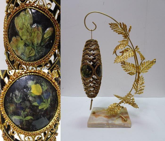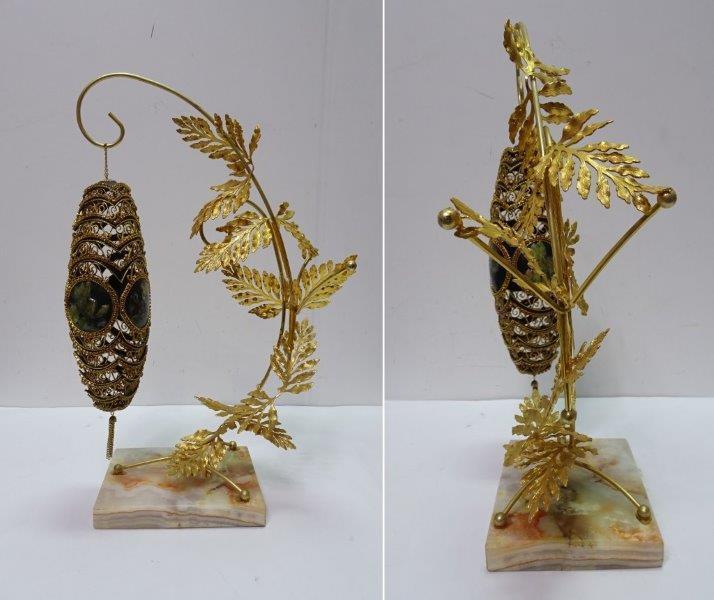 こちらの商品運賃着払いとなっております。近県でも1200円以上運賃かかるかと思いますのでお間違えのないようどうぞよろしくお願い致します。サイズ:高さ34cm(台含む)、横21.5cm、奥行き11cm。手間の掛かった装飾を施しております。現状優先とお考え頂き大まかな外観状態は写真をご参照頂けますようどうぞよろしくお願いいたします。その他古いもので、経年の擦れ、汚れ、傷等ございます。