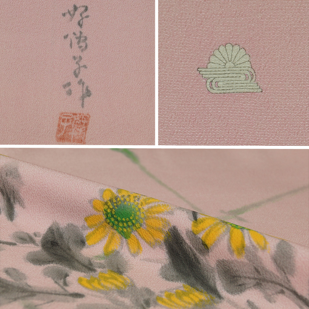 備考 | 熊谷好博子謹製、下前に銘と落款が入っております。 紋:菊水紋 五つ紋入り。 ※モニターの設定により、色・素材の見え方などが実際の商品と 多少異なることがございます。 |