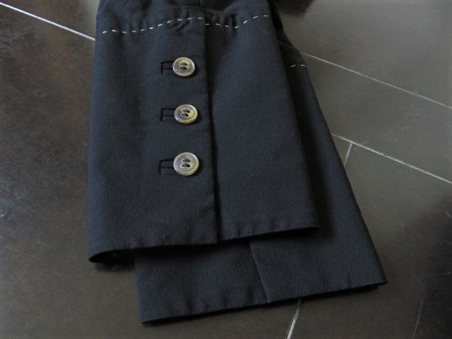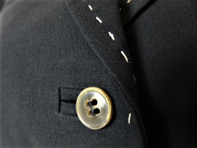 イタリー製生地使用の伸縮するストレッチ素材、背抜き裏地、お袖にボタン付きスリット入っています。