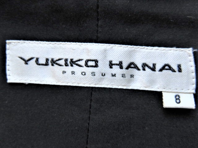 ■上質美品 イタリー製【 YUKIKO HANAI 】ユキコ ハナイ 高級 ストレッチ ジャケット 黒【8】9号 M ブラック 上質美品 j918
