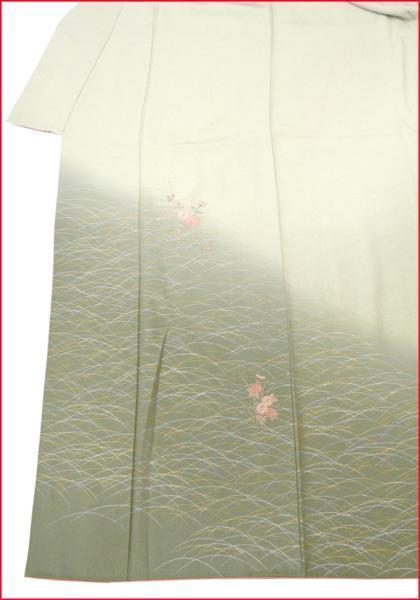 ![]() | 【店頭価格15000円の品 在庫処分 大幅値下げ】 柳茶色の地に 金銀の芝草文が並びその中に 菊や萩等の秋草文様が刺繍された上品で可憐な 印象の付下げで御座います。 合わせる帯や小物によって様々な趣をお楽しみ下さいませ。 お見逃し無く!! | ||