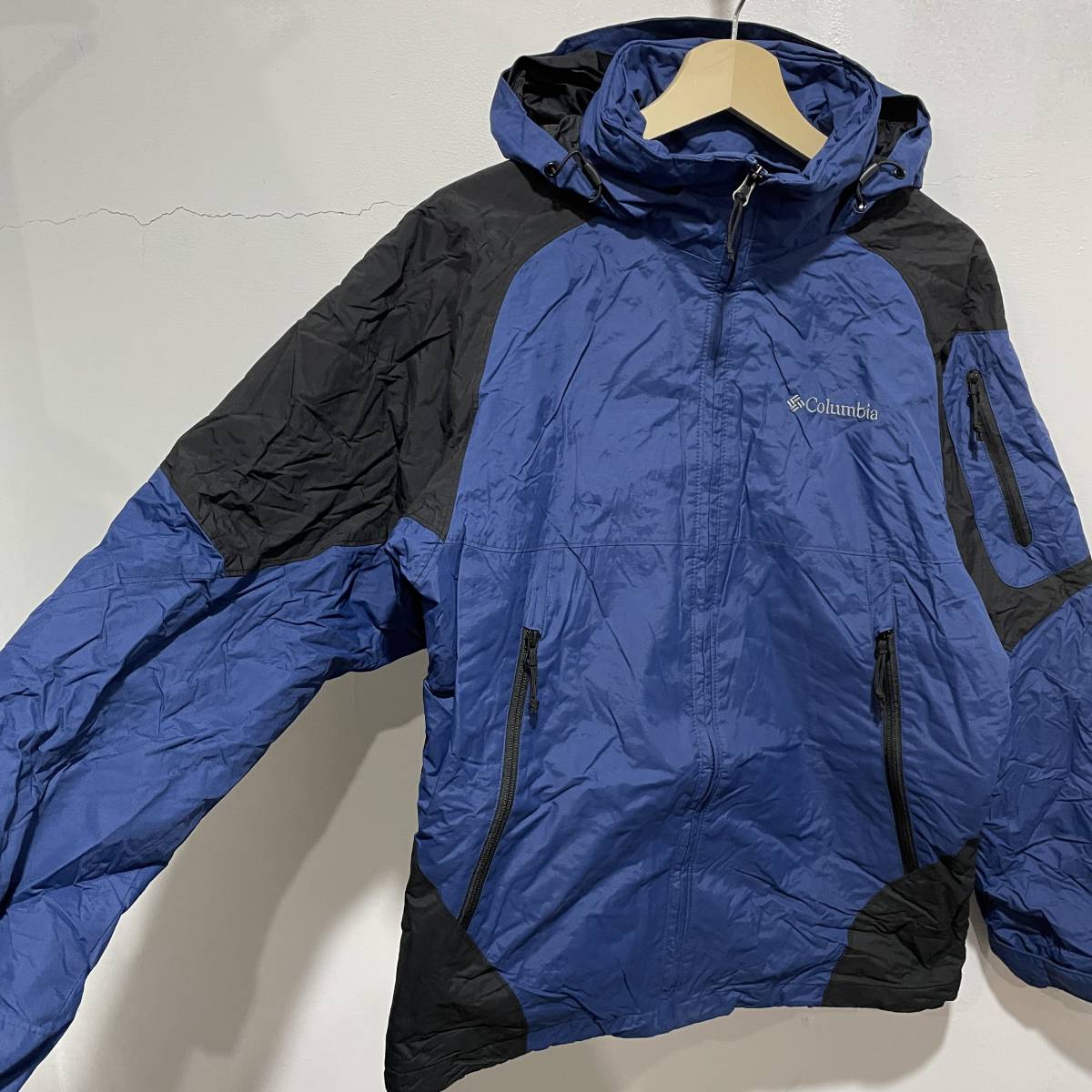 コロンビアのマウンテンパーカーです。中綿の入ったモデルですがすっきりとしたシルエットです。すっきりとしたフィットするシルエットがかっこいいです。両サイドにポケットがあります。フードは襟に収納できます。裾にドローコードが付いていますのでシルエットを調節できます。