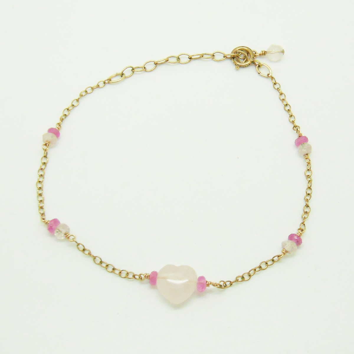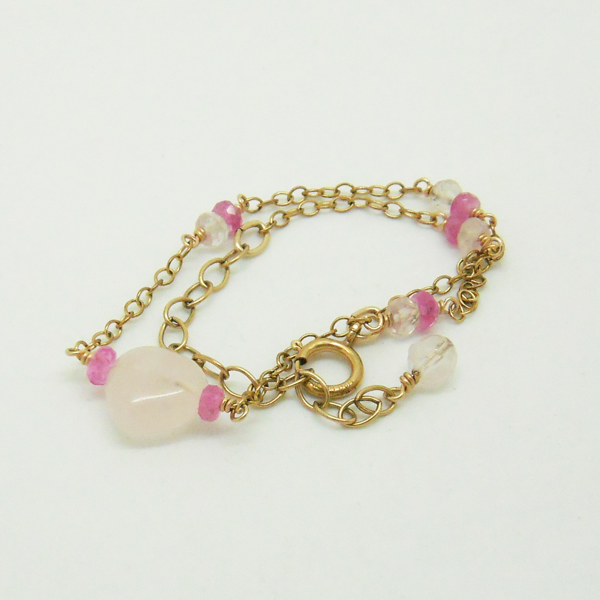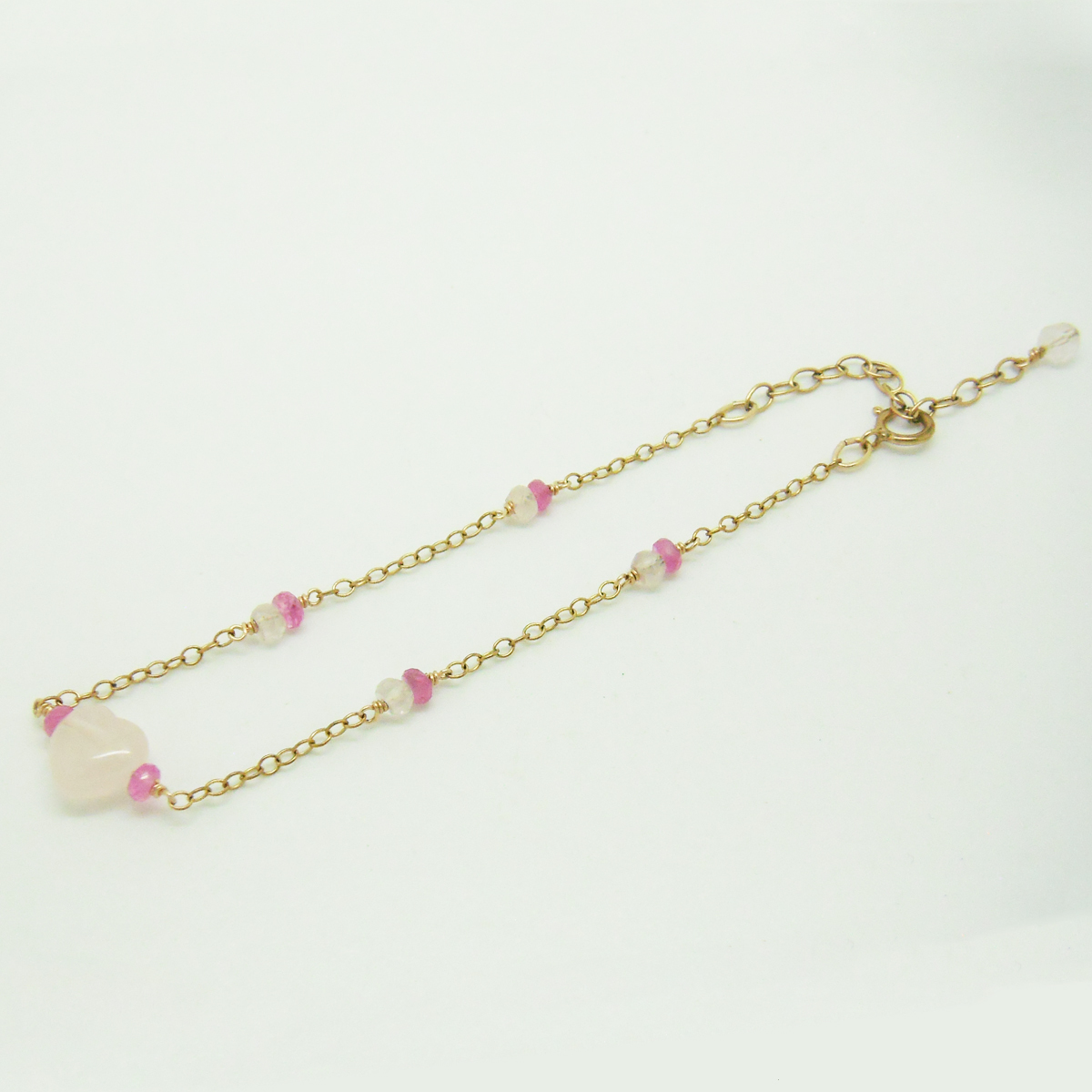 ルビー【紅玉】とローズクォーツ【紅水晶】ブレスレット♪K14メッキ刻印有り