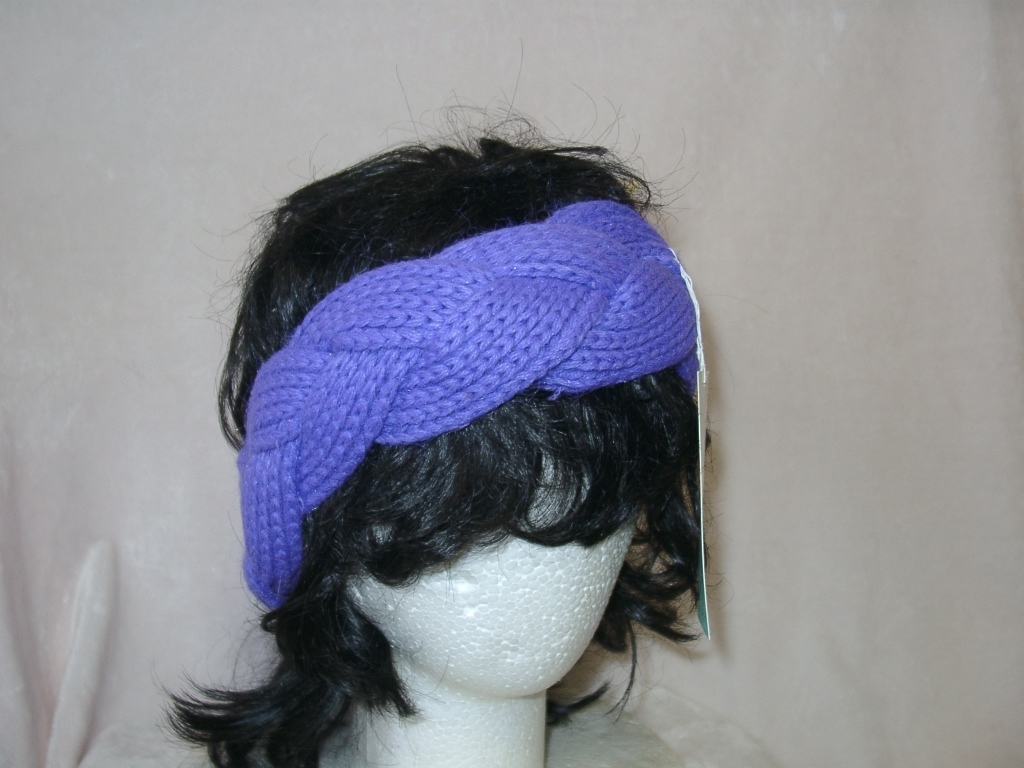 即決!未使用●ニットヘアバンド●太い細三つ編みタイプ●紫