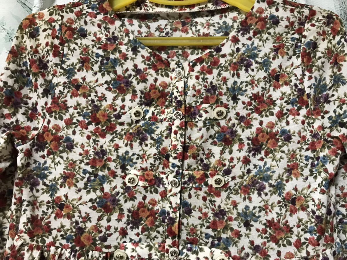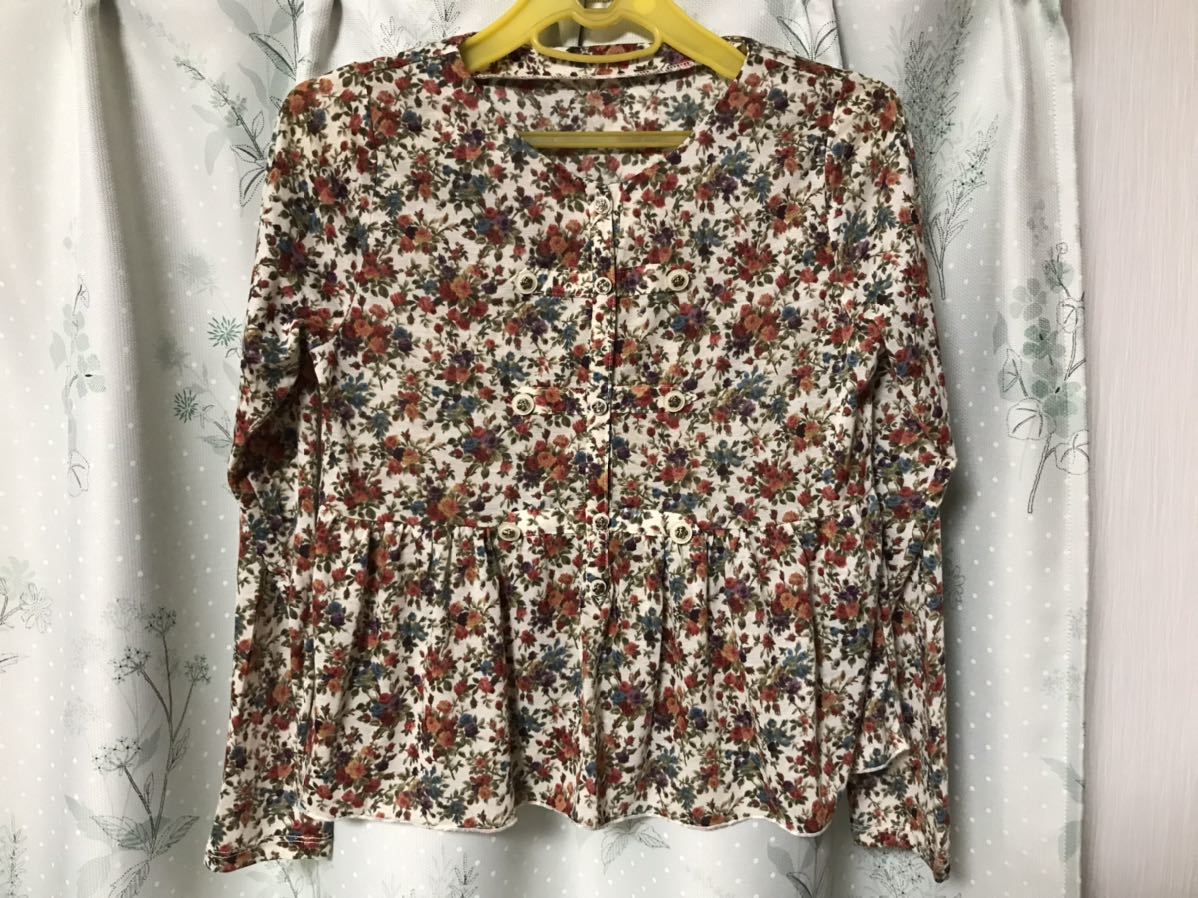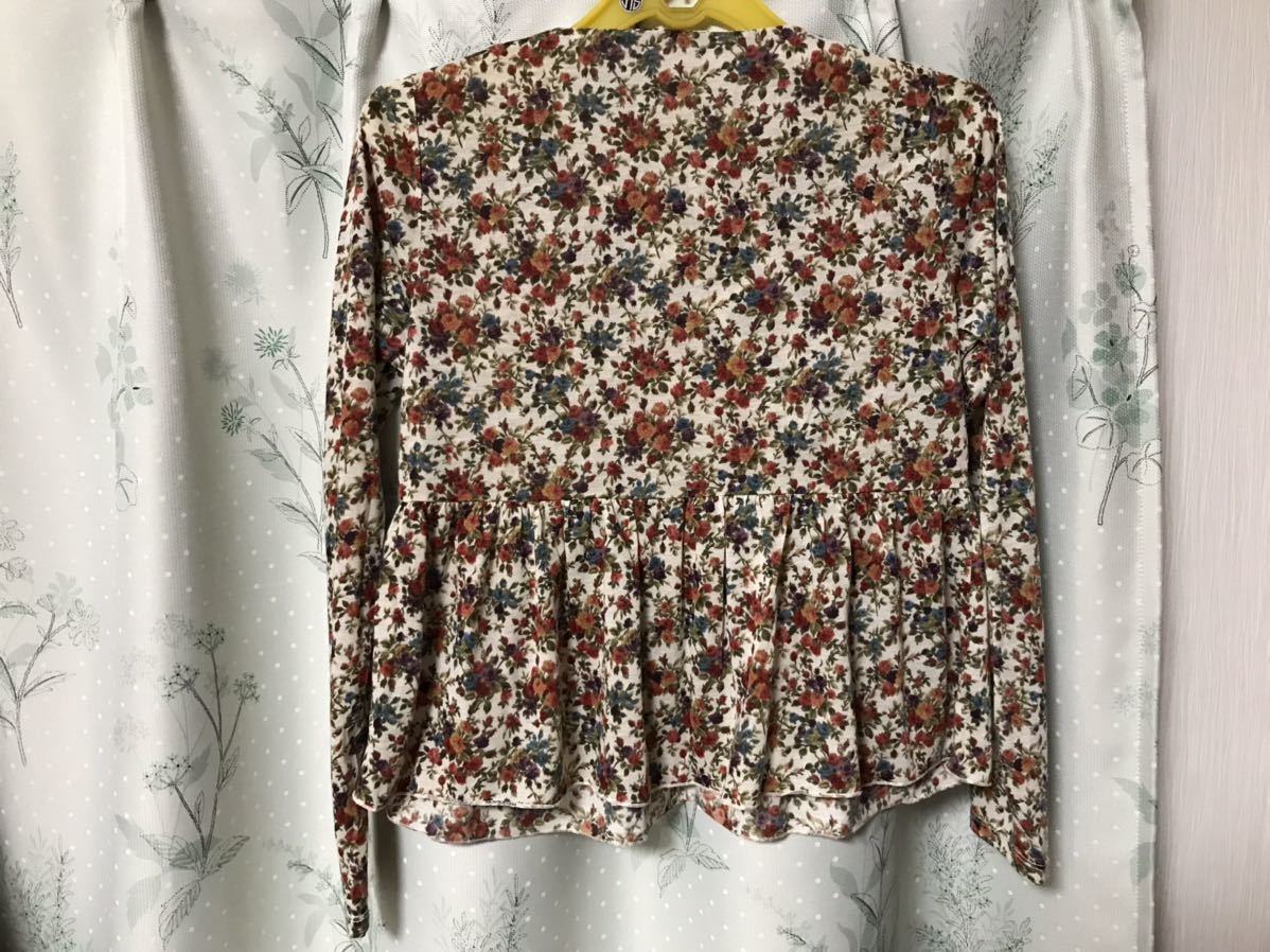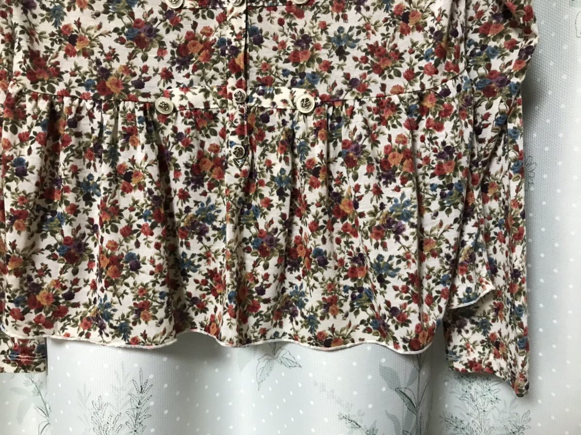花柄 フリル カットソー トップス 長袖 ベージュ マルチカラー