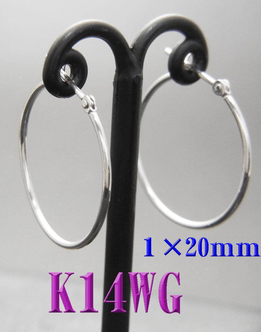 品名 K14WG フープピアス 1ペア 石名:----- ピアスの素材:K14ホワイトーゴールド |