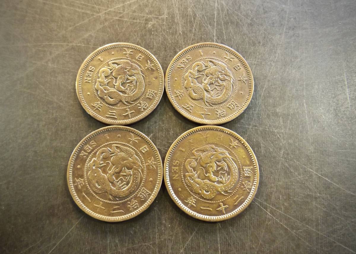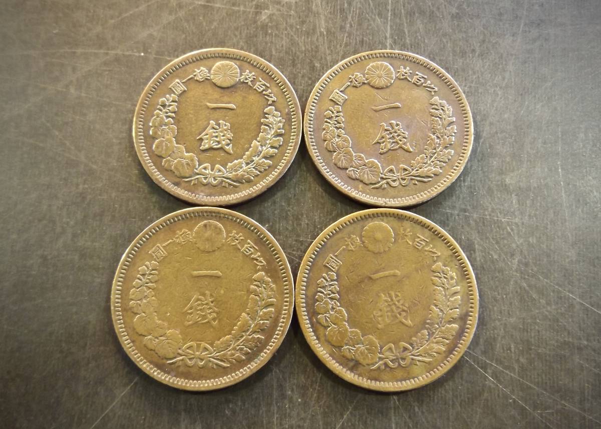 1銭胴貨 4枚セット 送料無料 (13142)  古銭 骨董 アンティーク 日本 貨幣 菊の紋章 お宝