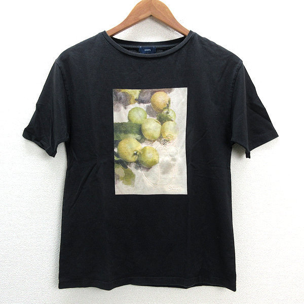 s■シップス/ships 果物 ボックスプリント 半袖Tシャツ【S程度】黒/MENS/60【中古】