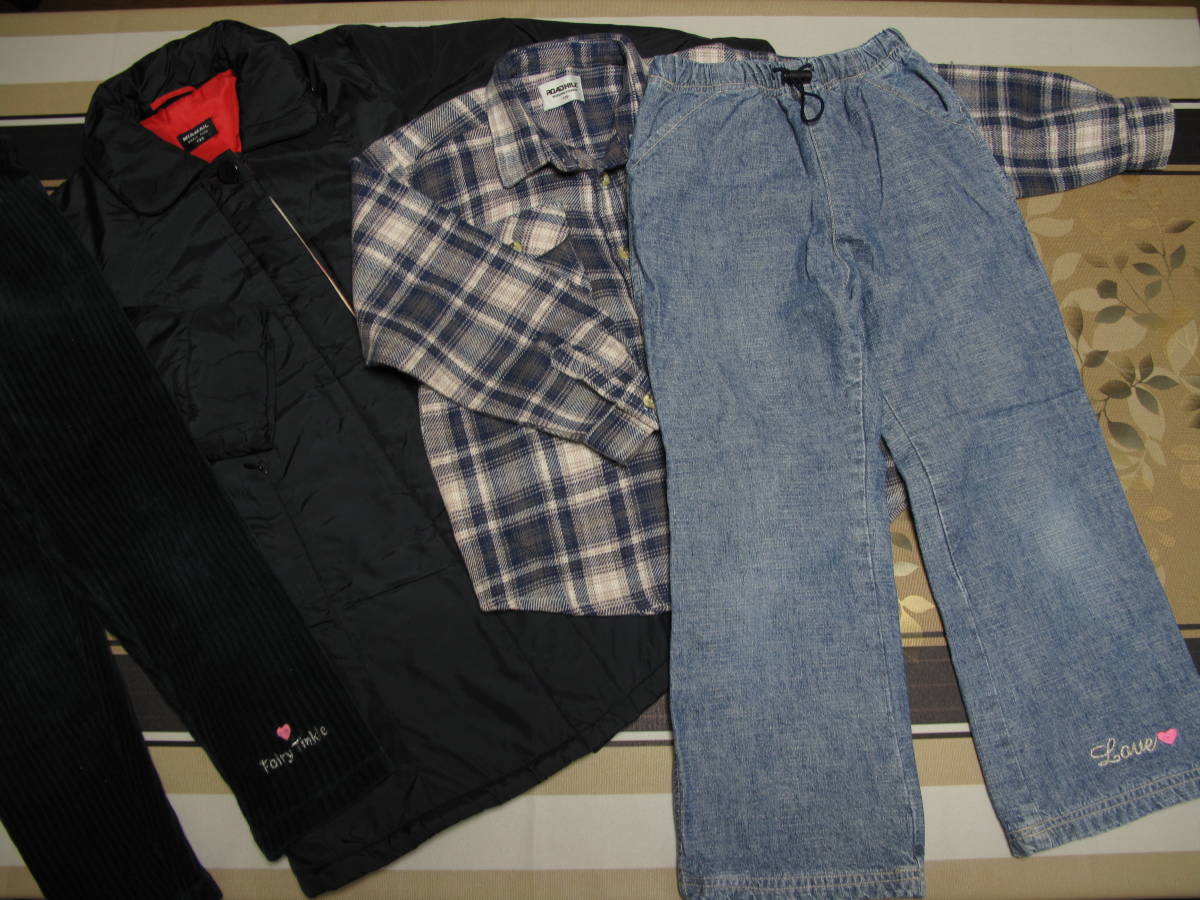 120 4点セット まとめ売り 女の子 中綿 コート ネルシャツ 裏起毛 デニム コーデュロイ パンツ 春物 秋物 冬物