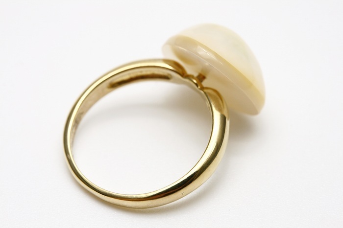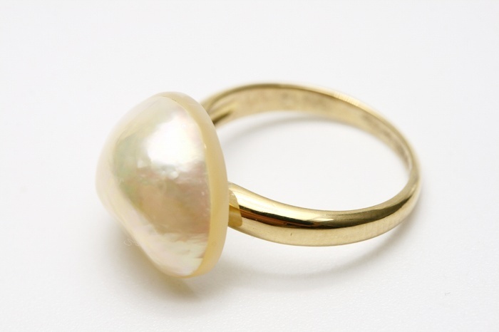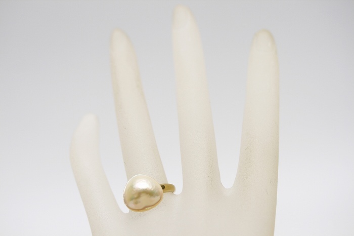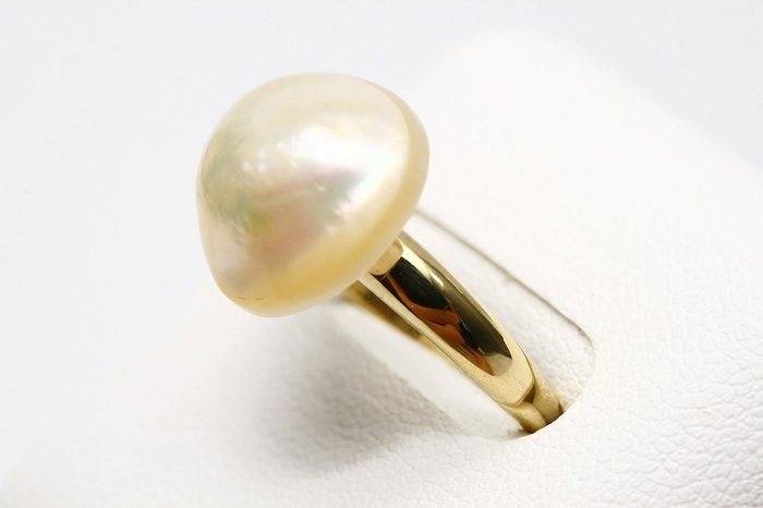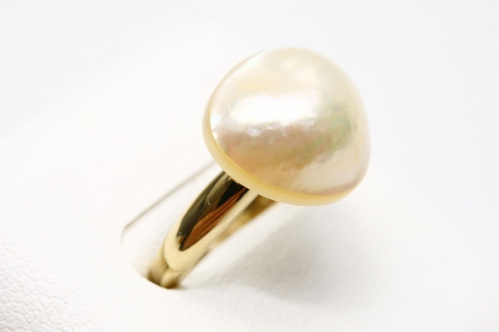 マベパールを使用したパールリングです。 マベパールとはマベ貝から生まれた半径真珠で主に温かい海で取れます。 片面は特殊な樹脂でコーティングされています。 ボリューム感満点の大粒サイズで美しい色艶が魅力的です。 半径のパールなので身に着けた部分にもフィットいたします。 同サイズの南洋パールなどに比べお求めやすいお値段なのも嬉しいポイントです。 デイリーからパーティーシーンまで大胆に神秘の真珠の輝きをお試し下さい。 | |