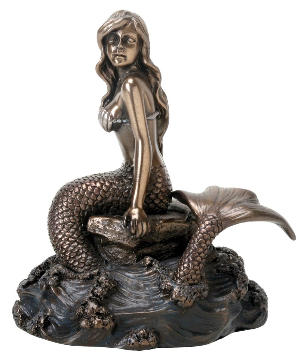 【YTC Bronze Colored Ocean Mermaid on Rock with Tail in Water Figurine】