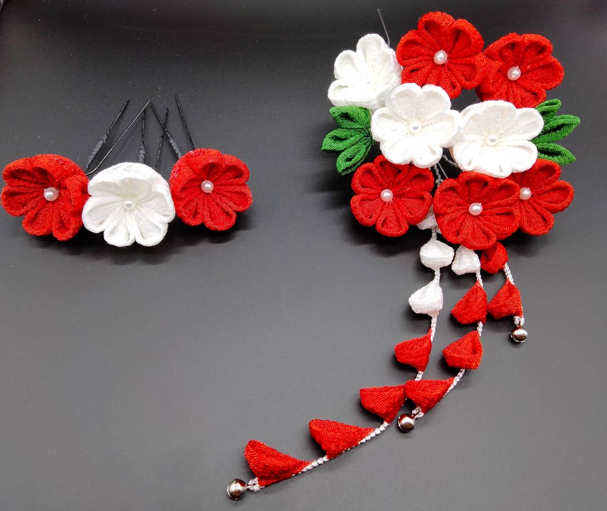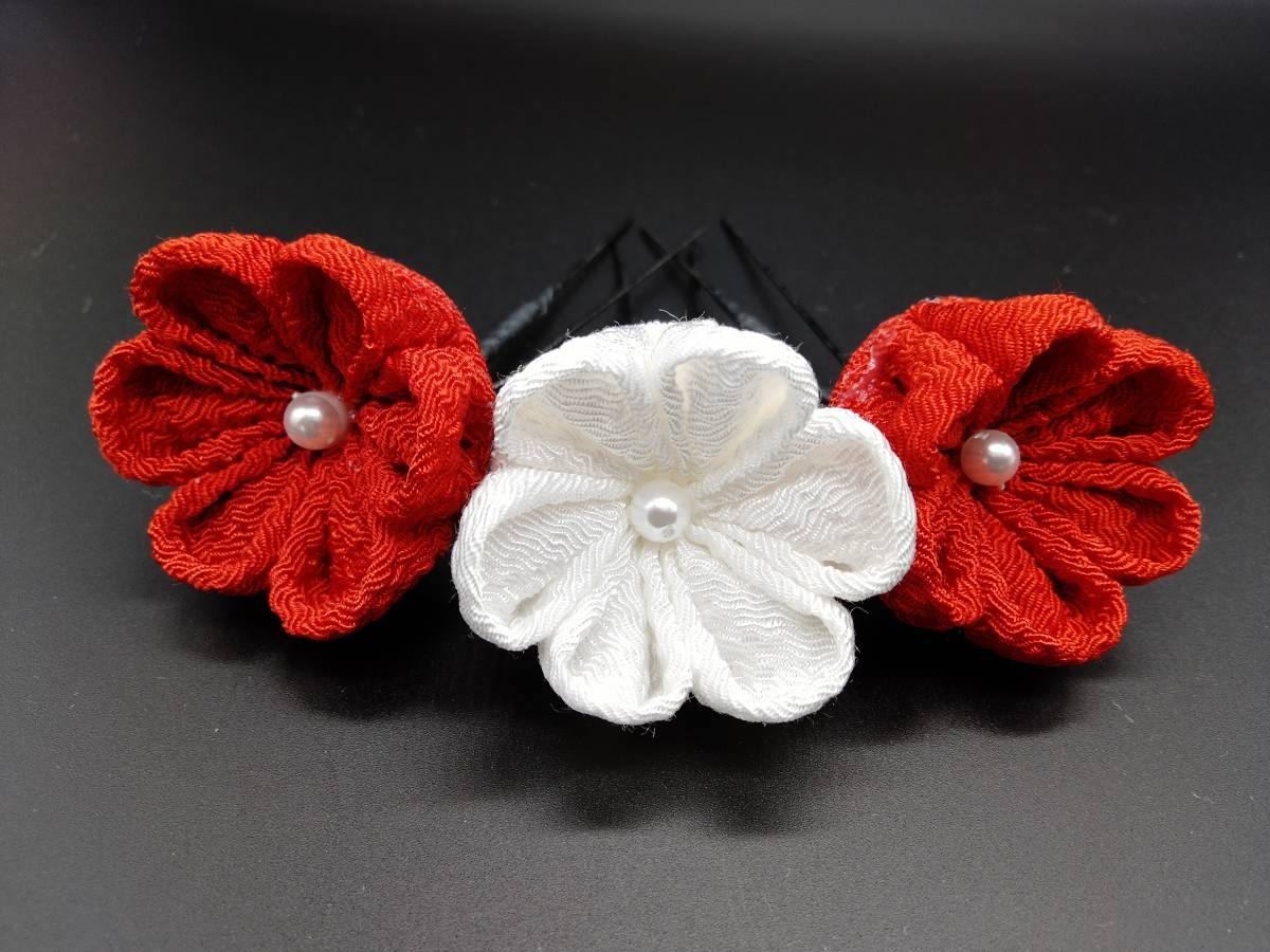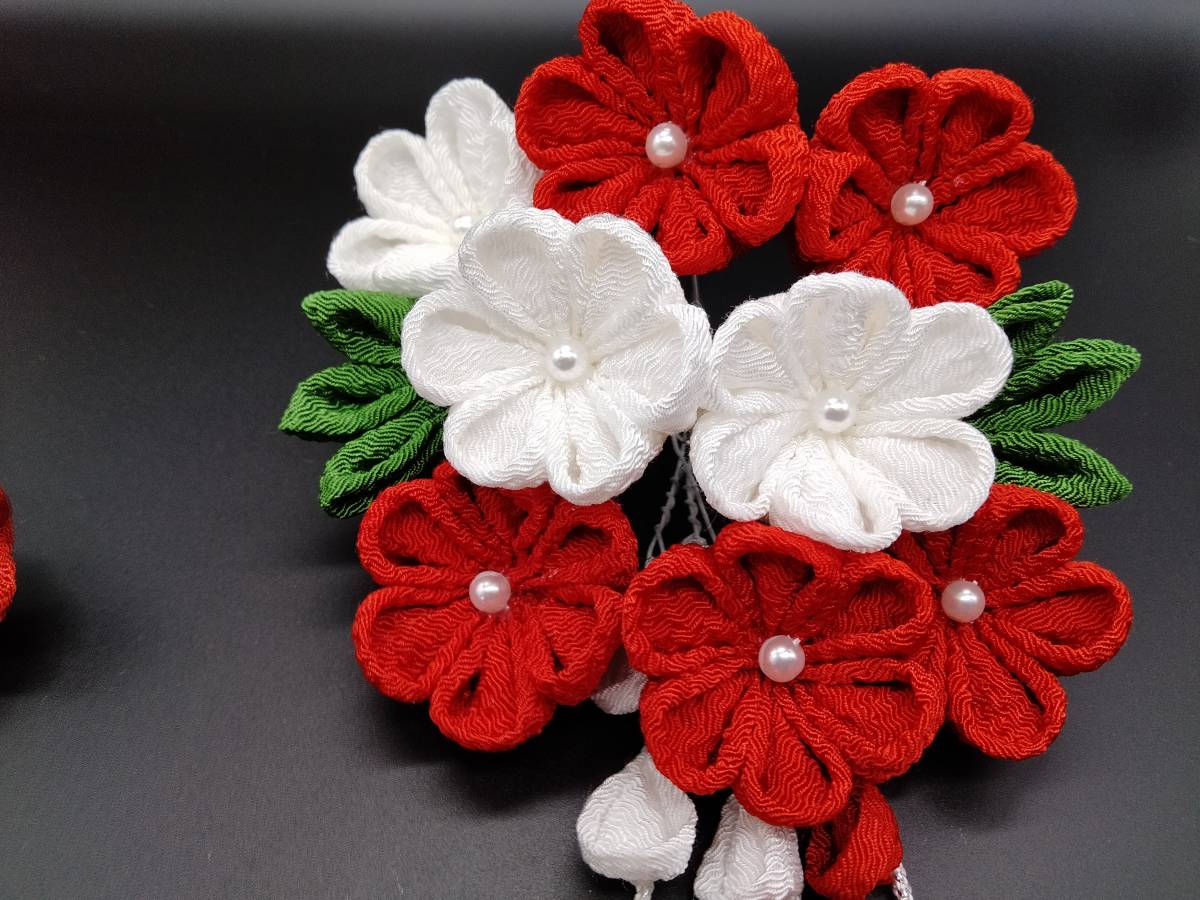 送料無料!<工房静>つまみ細工 かんざし 紅白小花さがり 成人式 卒業式 前撮り 着物 髪飾り 袴 小学校 大学