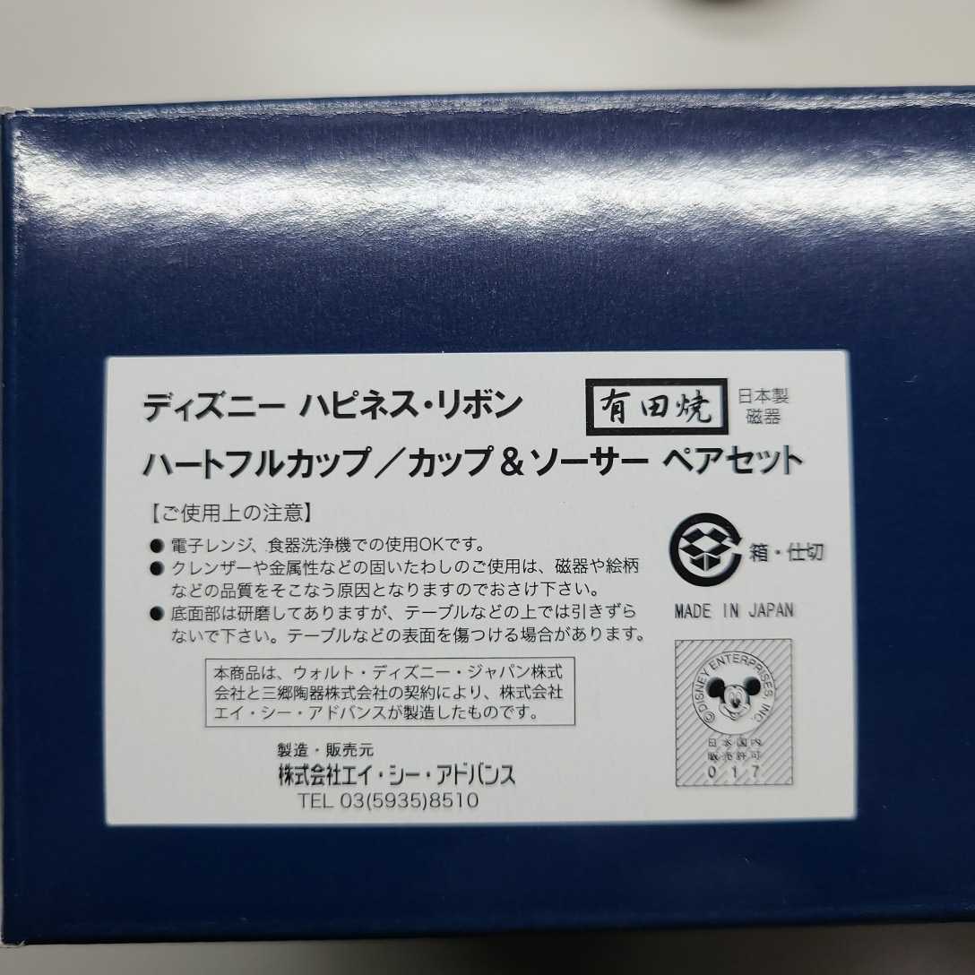 「ディズニー ハピネス・リボン ハートフルカップ カップ&ソーサー ペアセット」 有田焼 新品・未使用です。