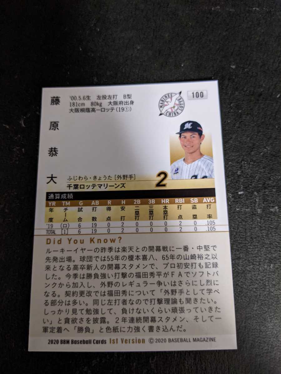 即決★BBM2020 千葉ロッテ 藤原恭大