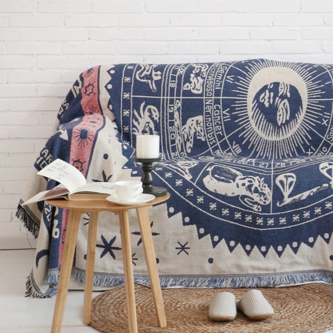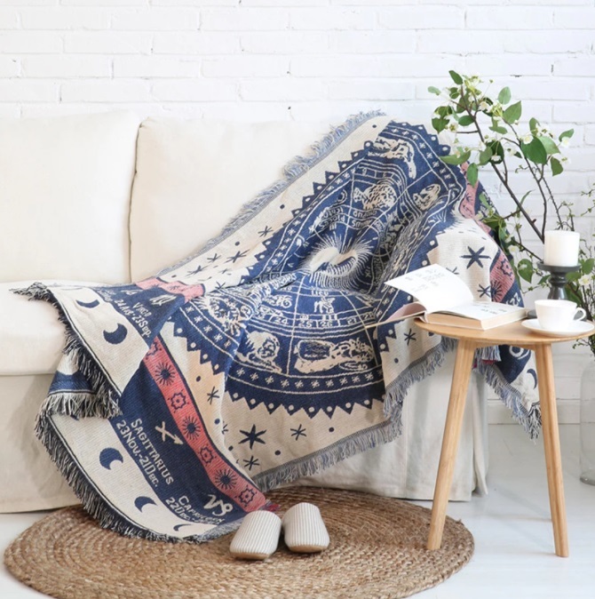 ボヘミアンスタイル ネイティブ柄 ソファー ブランケット フリンジ タッセル付き ベッドカバー90cm×210cm 【5~8】