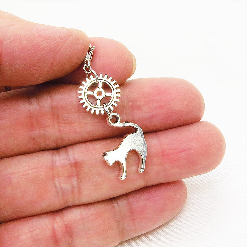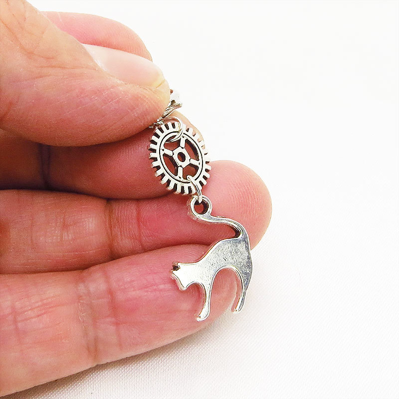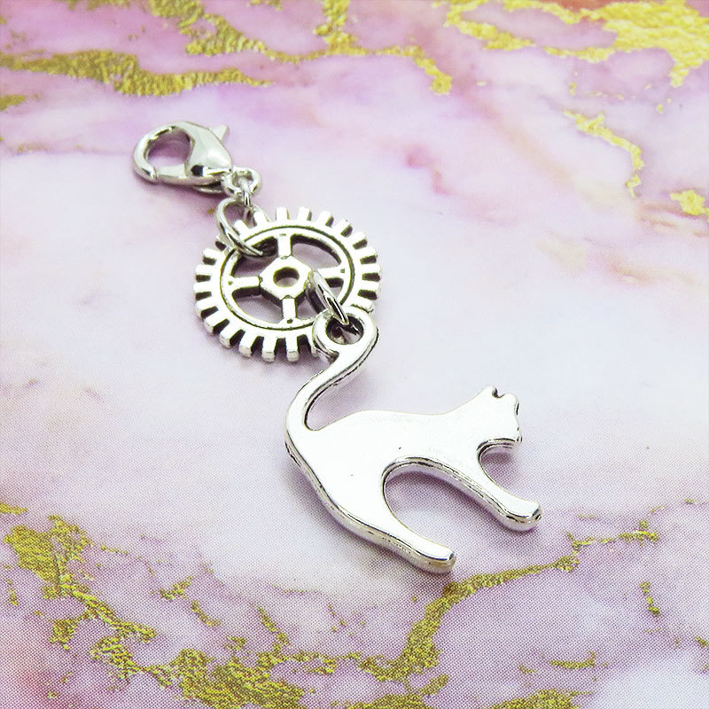 猫と歯車のスチームパンク風チャームをつけてお出かけして下さい