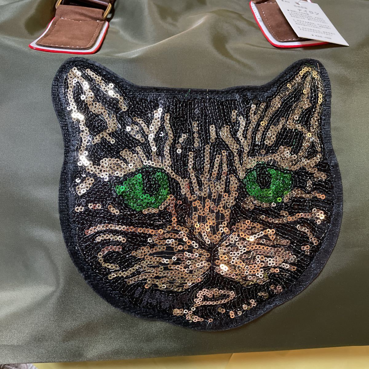 サイズ高さ約、30センチ、横、45センチ、マチ、15センチ、ナイロン素材、ショルダーにも、なります、ネコ部分は、スパンコールです