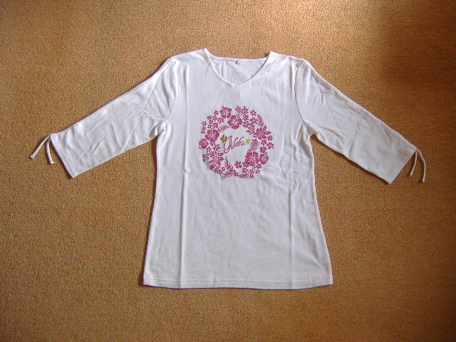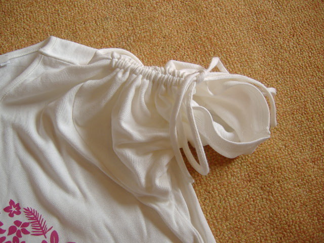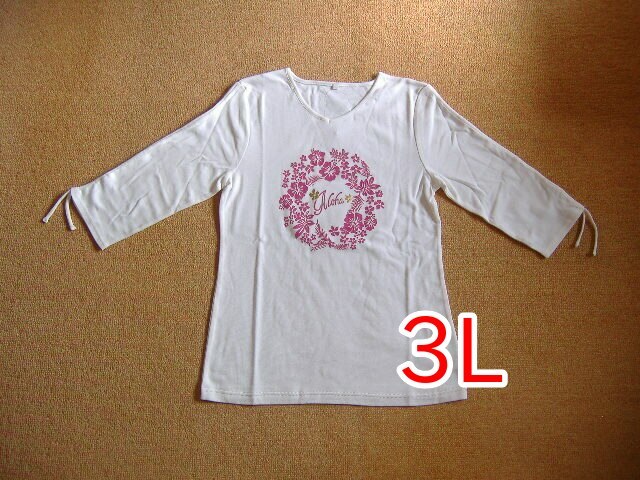 シャーリング7分袖Tシャツ★袖の長さが変えられる★白★3Lサイズ