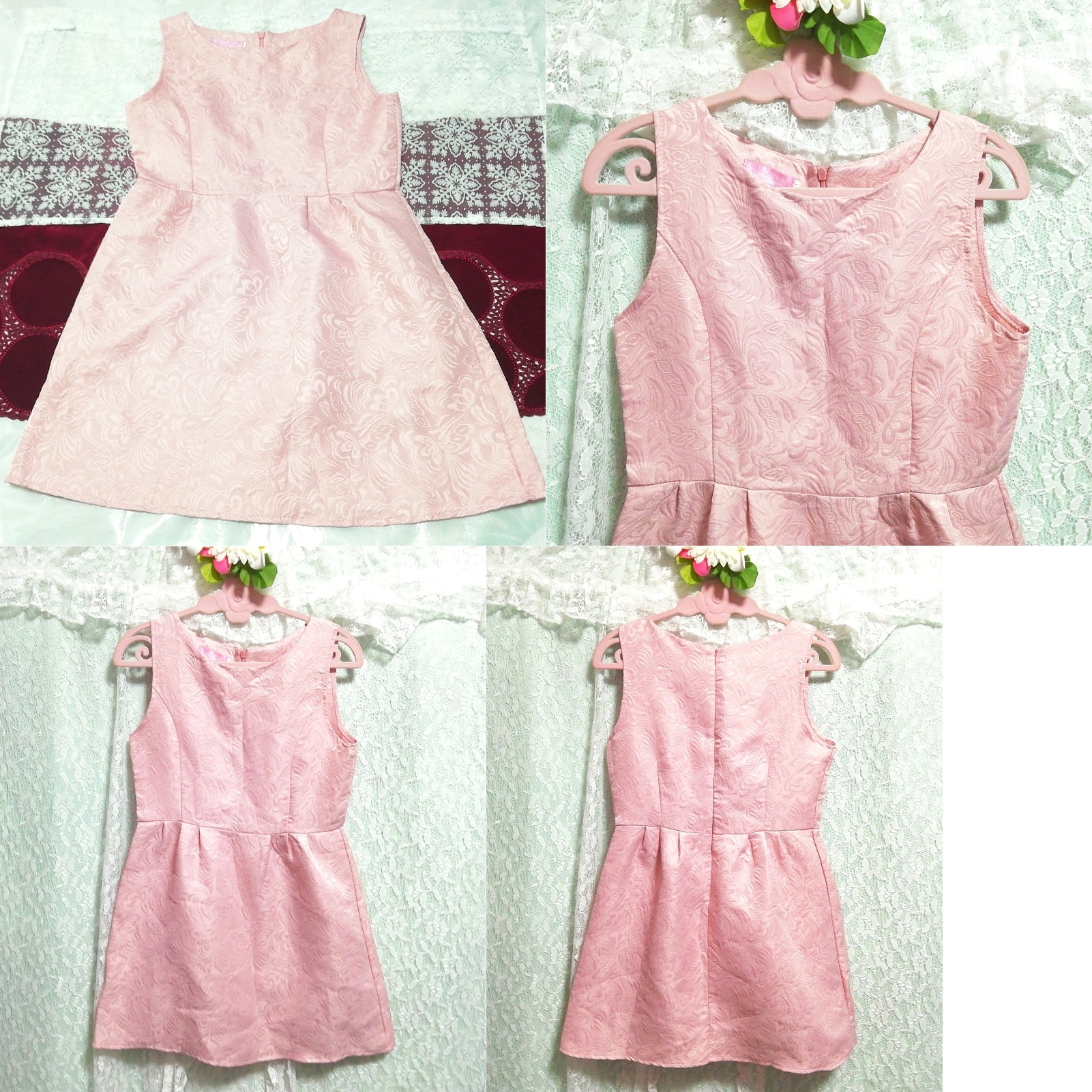 ピンクノースリーブミニスカートネグリジェワンピース Pink sleeveless mini skirt negligee dress
