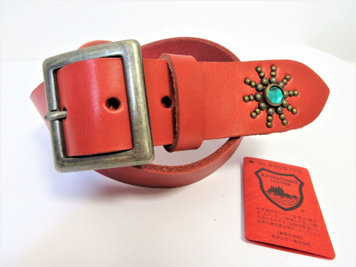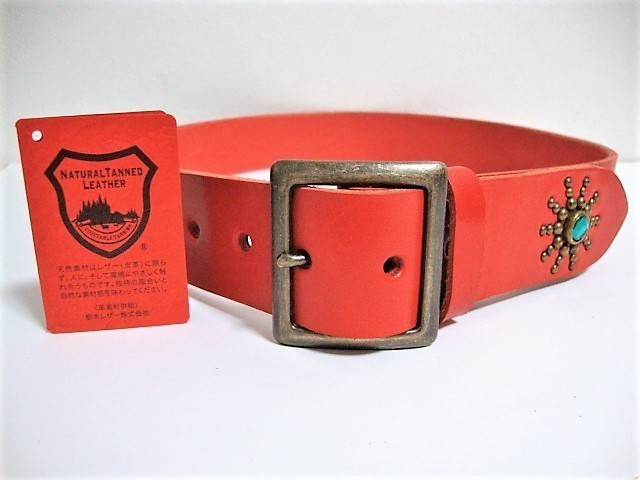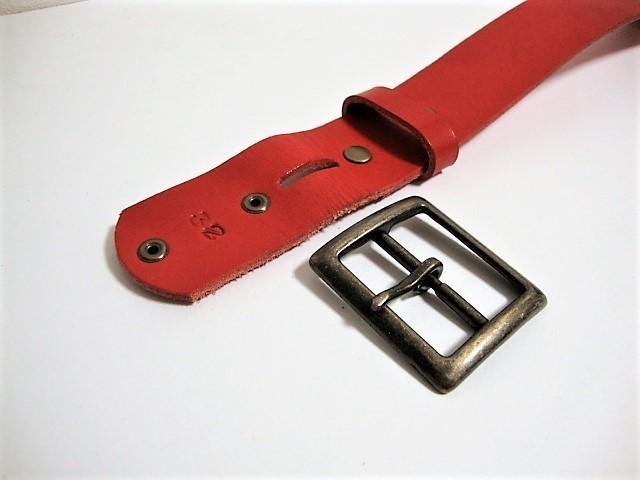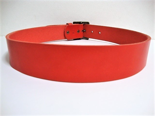 ベルトの幅は40mm。革の厚みは 4mm(多少の誤差はあります。)色は赤色です。