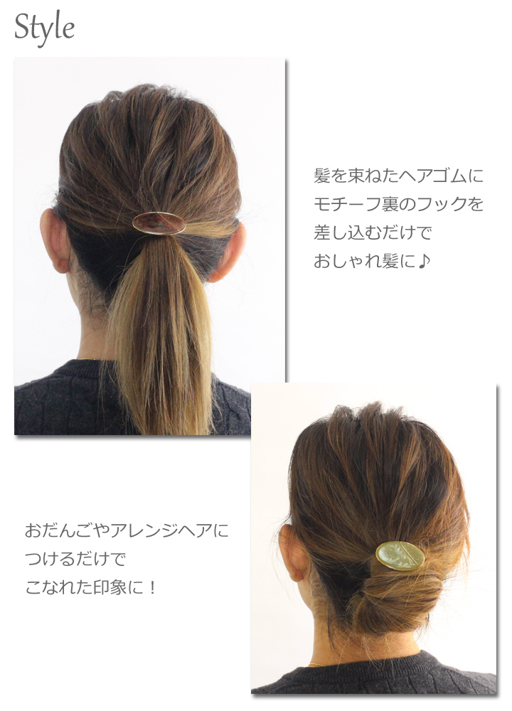 | 商品説明 | 使い方は髪を束ねたヘアゴムにモチーフ裏のフックをひっかけるだけ!! いままでのモチーフつきヘアゴムですとモチーフの位置や向きが思ったように決まらなかったり、 ゴムが伸びてしまって使えなくなってしまったりと。。。 そんな悩みをすべて解消してくれたのが『ポニーフック』新感覚アイテムです。 お団子やくるりんぱにつけたりと グッとおしゃれになりますので是非チャレンジしてみてください☆ また、単品使いはもちろんですが重ね付けすることでオリジナリティー感がでます!! |