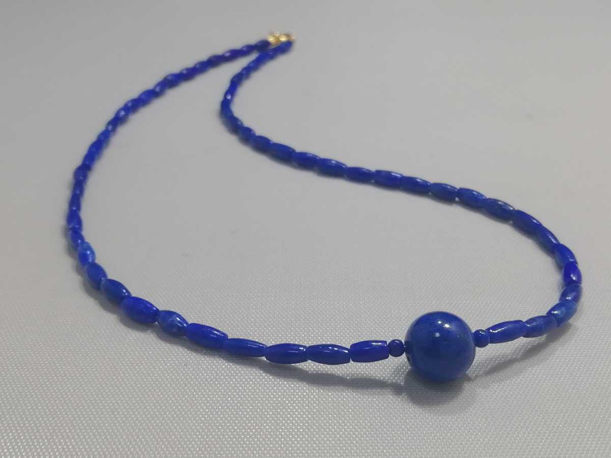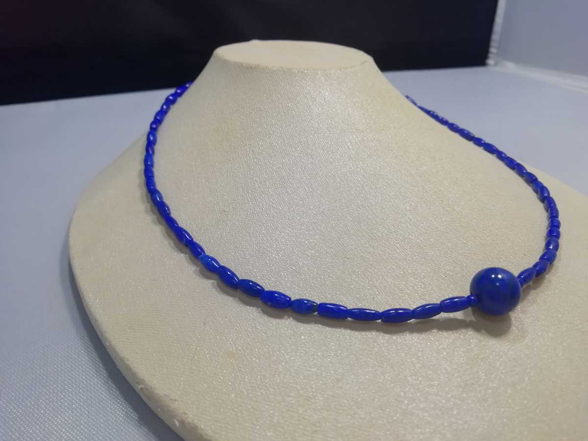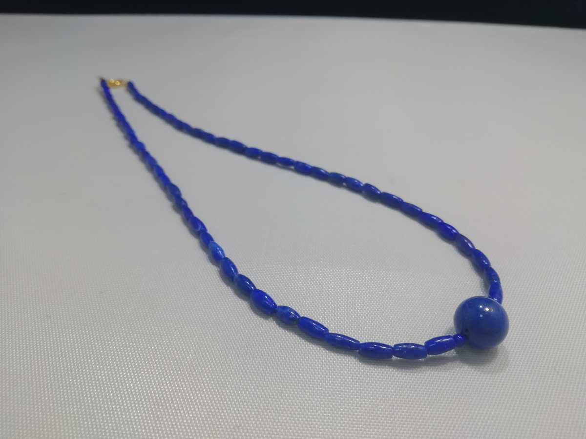 ハイグレード天然ラピスラズリオリジナルライスカットワンポイントデザインネックレス