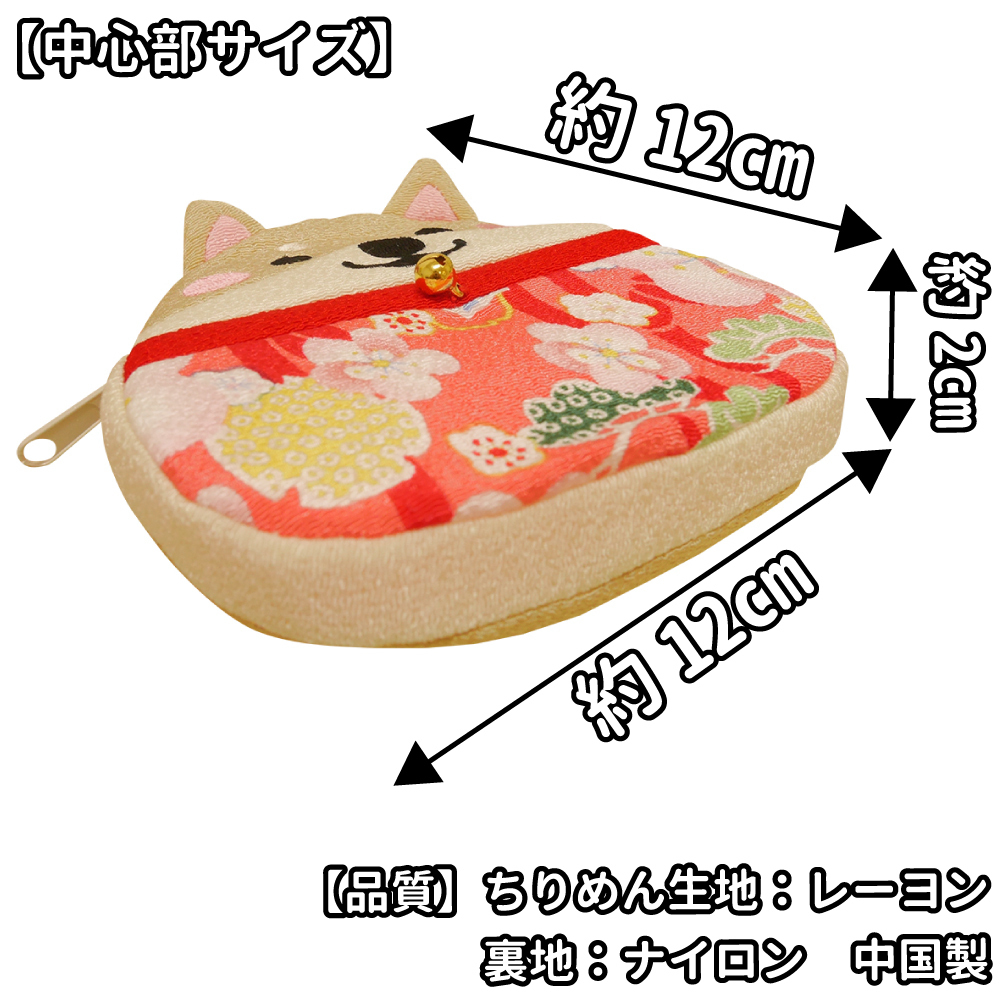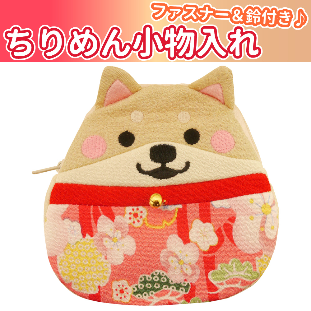 ■新品 ファスナー&鈴付き ちりめん小物入れ かわいい 柴犬 犬 いぬ イヌ 鈴付き ポーチ |