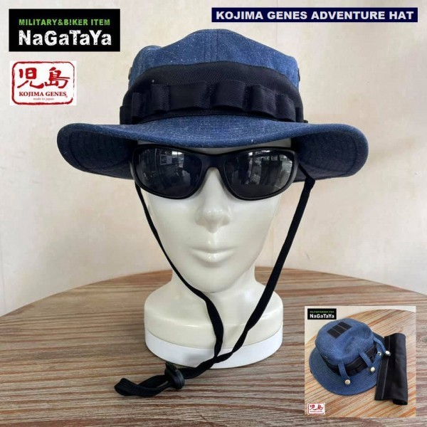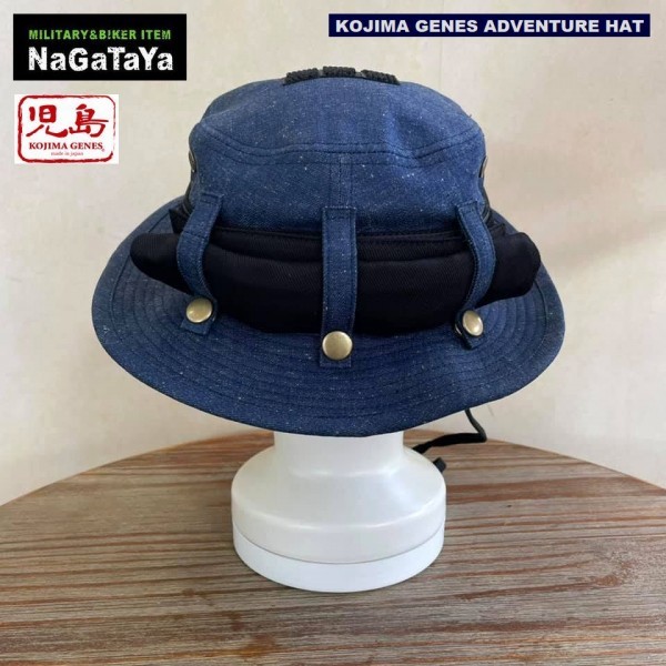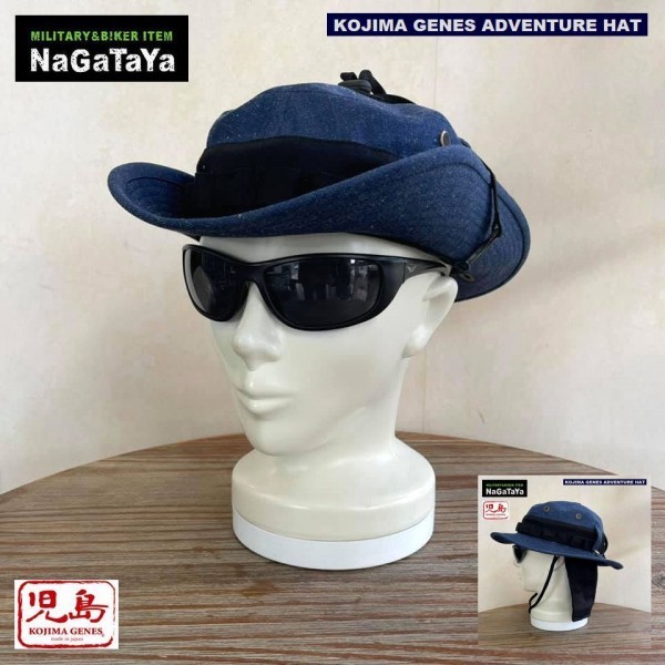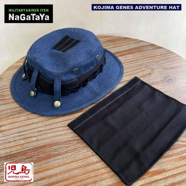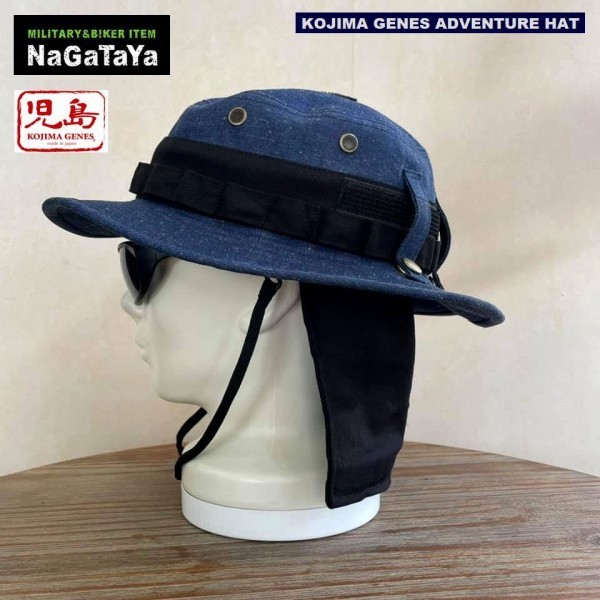 児島 KOJIMA GENES RNB 9042 インディゴ アドベンチャ―ハット 日よけ付 コットン100% フリーサイズ 日本製 キャンプ ブッシュクラフト