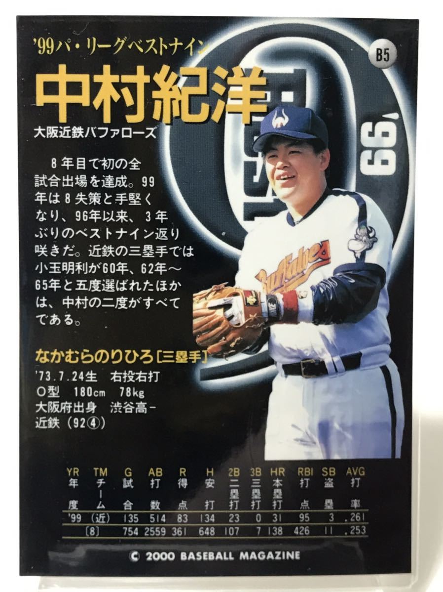 中村紀洋 B5 99パリーグベストナイン  BBM ベースボールマガジン 2000 近鉄バッファローズ