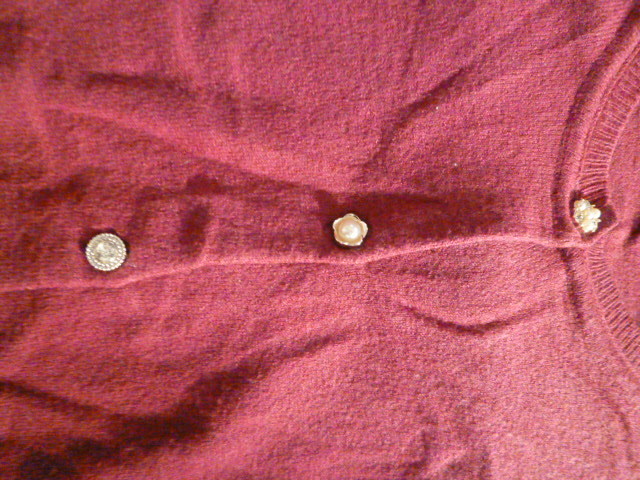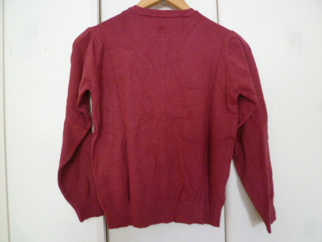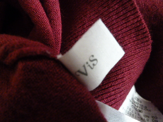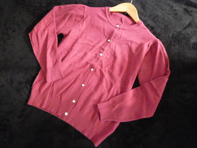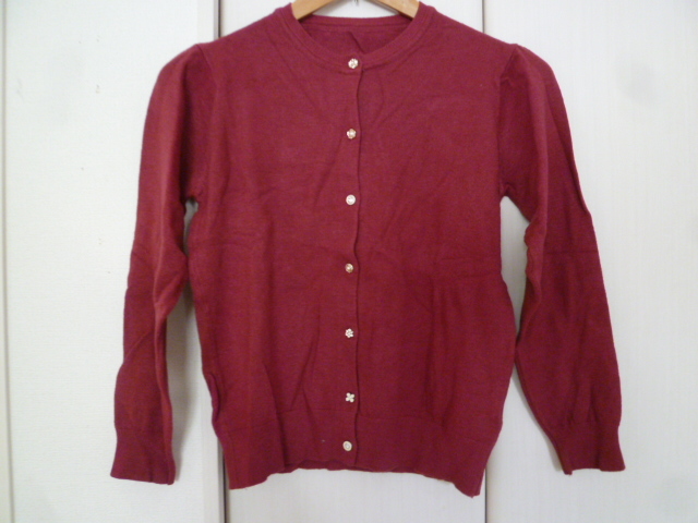 VIS/ヴィス△あずき色系パールラインストーンデイジーいろいろボタンニットカーディガンL/ジュン△K119