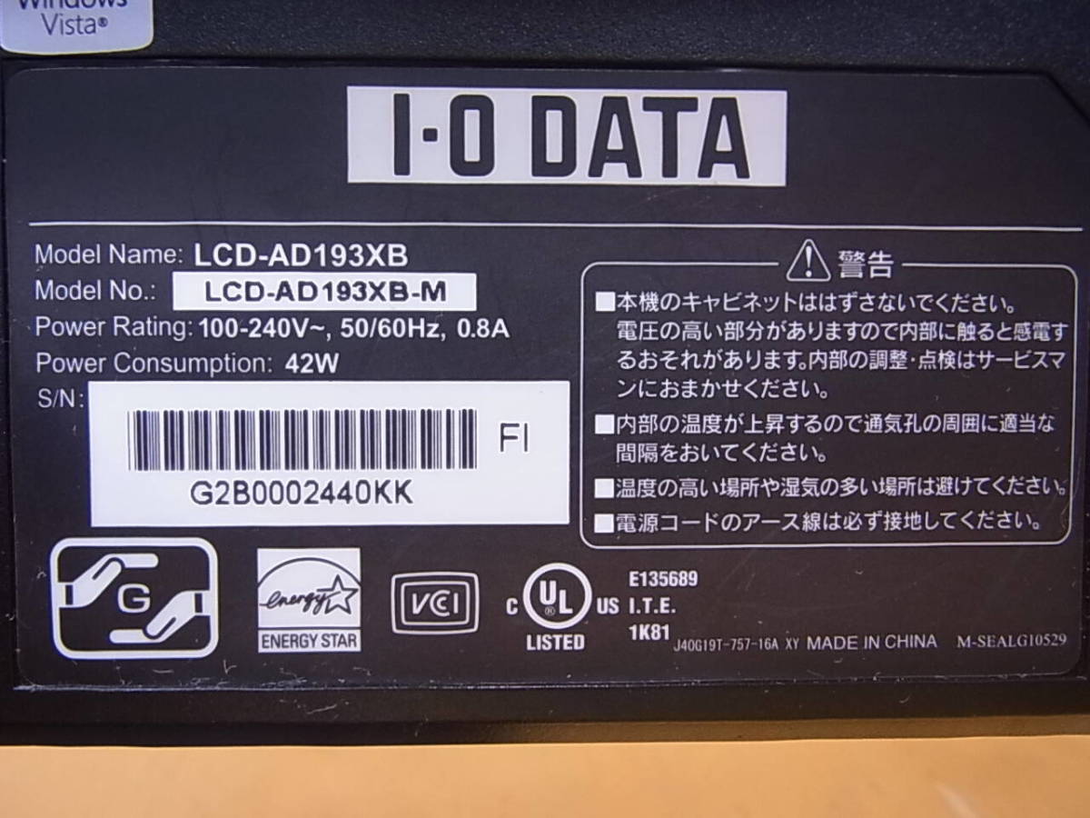 □S/919☆アイ・オー・データ I-O DATA☆19型 液晶ディスプレイモニター☆LCD-AD193XB☆動作OK | |