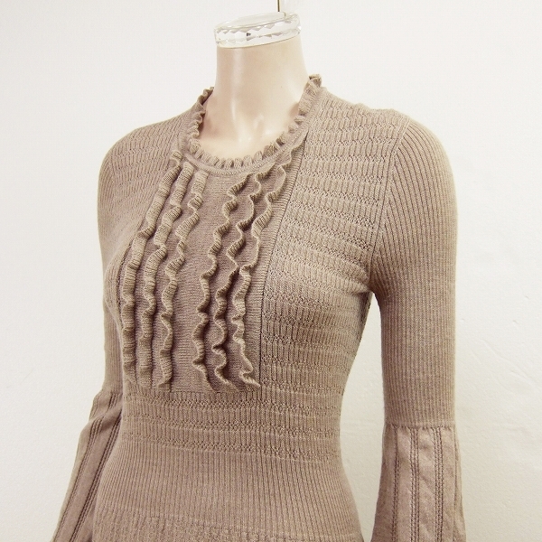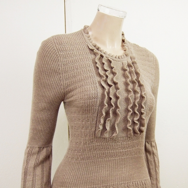 ![]() ![]() 落札後はオークション終了のお知らせメールに出品者からのメッセージが御座います。 自己紹介欄には急な休み等の記載をする場合が御座いますので一度お目通し頂きます様お願いいたします。ご一読の上オークション終了後2日以内の連絡、 落札後4日以内のご入金のお約束を守って頂ける方のご入札をお待ちしております。 小さい子供がおりますのでお急ぎのお取引を希望される方のご入札は遠慮下さいませ。 ---↓ここにブランド名記入---- ブランド名:PINORE ピノーレ (株)キング 日本製 ---↓ここに特徴記入---- 特徴:様々な異織りの美しいシルエットワンピースです。サンド系とビスケット系の落ち着いた色合い。ウエスト&袖部の引き締まったリブ編みが袖口にむかってふくらみある優しいライン。胸元フリルが可憐でスカート裾部はややアシメトリーデザインの女優ニットワンピースです。(裏地の無いデザインです。) ---↓ここにサイズ記入---- サイズ : 11号 表示(トルソーは9号です) 実寸(平置き採寸) 肩幅35cm、身幅35cm、袖丈71cm、ウエスト27~37cm、着丈114cm、ヒップ44cm、裾幅53cm ---↓ここに素材記入---- 素材 : 毛100%(イタリア製素材使用)
