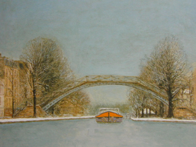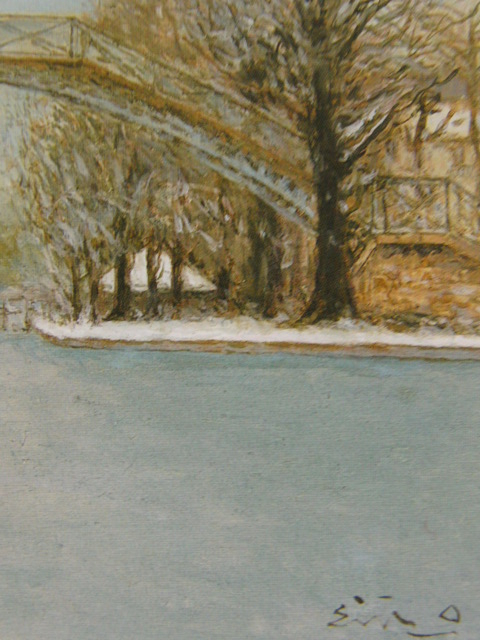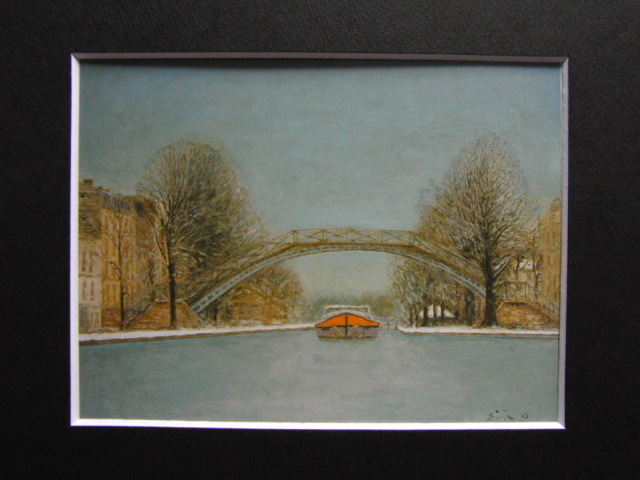 大津英敏、雪のサンマルタン運河、希少な額装用画集より、新品高級額装付、状態良好、送料無料、arte