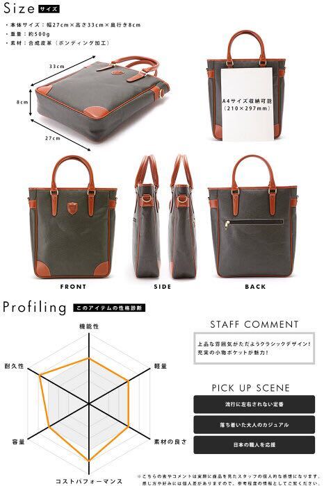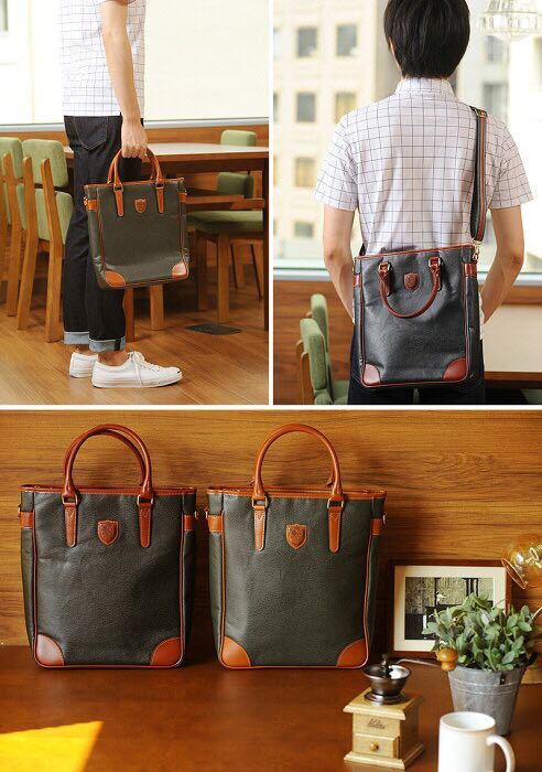 シワ感が特徴のボンディング加工フェイクレザーを使用した2wayショルダーバッグ。軽量な上に、雨などに濡れても一拭きするだけで大丈夫なメンテナンスフリーなところも魅力です。メイン収納はスタンダードなA4対応サイズ。7個の小物ポケットを搭載し、仕分け力は高めです。トートバッグとして手持ちもでき、私服スタイルでの通勤などにもうってつけです。カラーはブラック、カーキの2色を展開。大人の日常を上品に彩る、クラシックテイストのショルダーバッグです。
