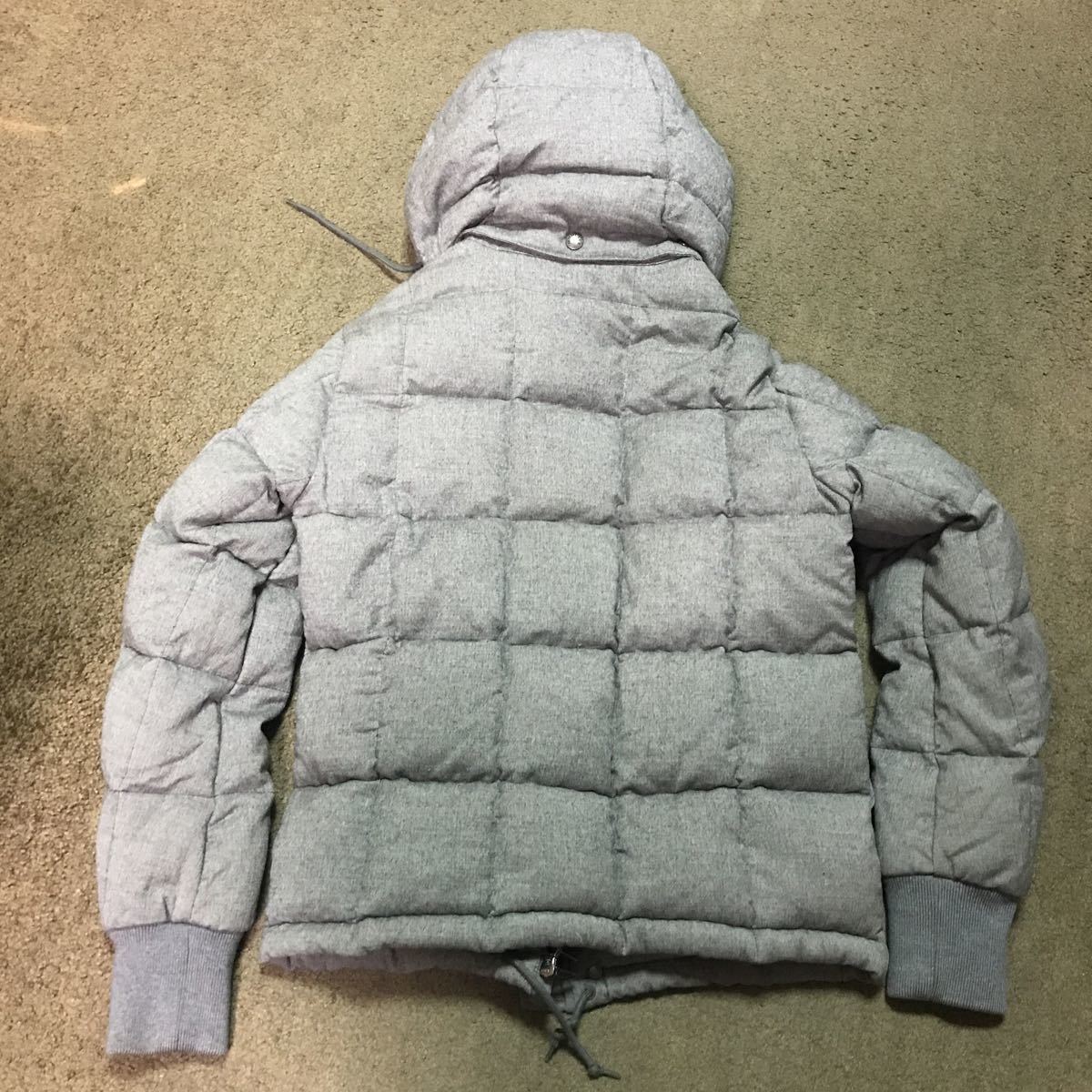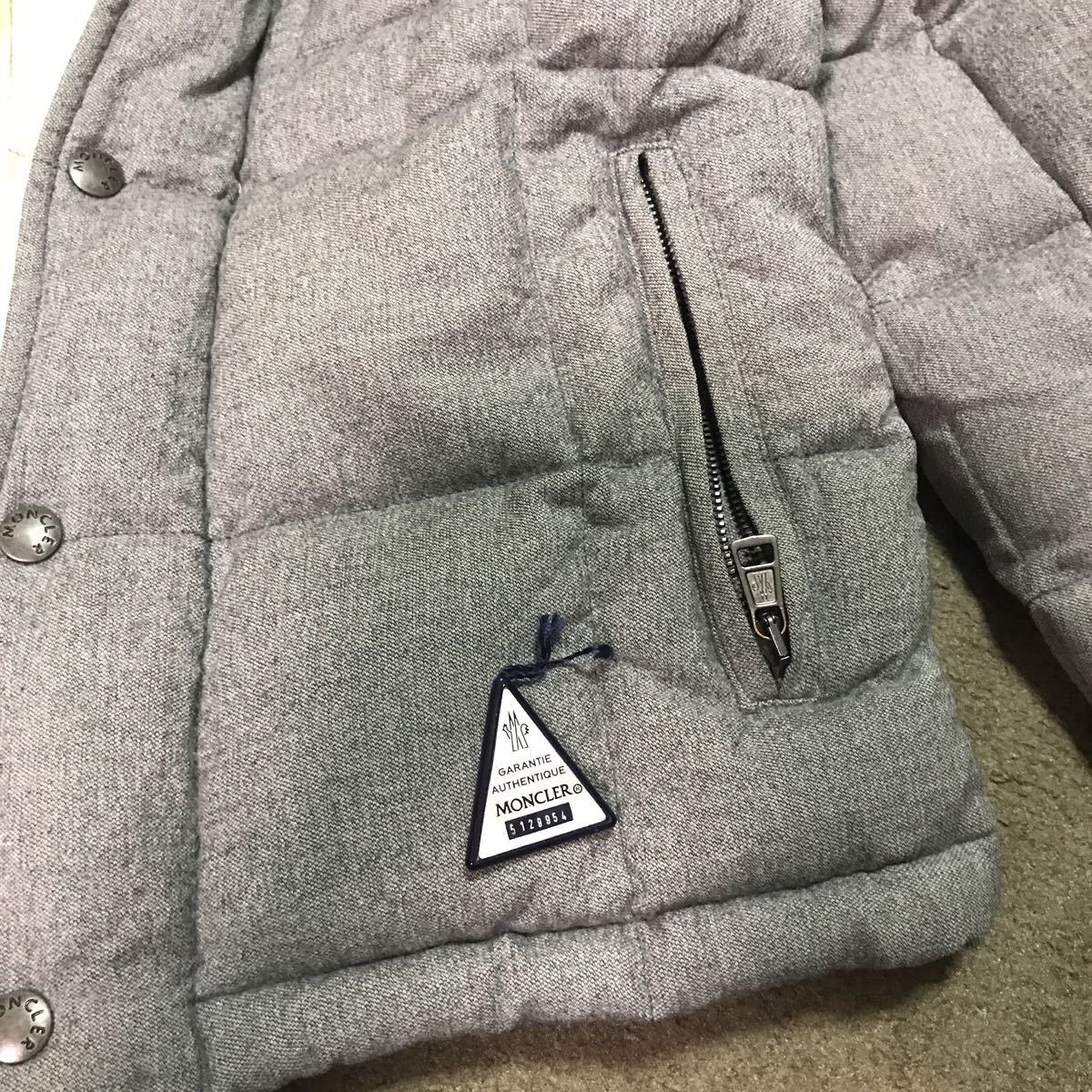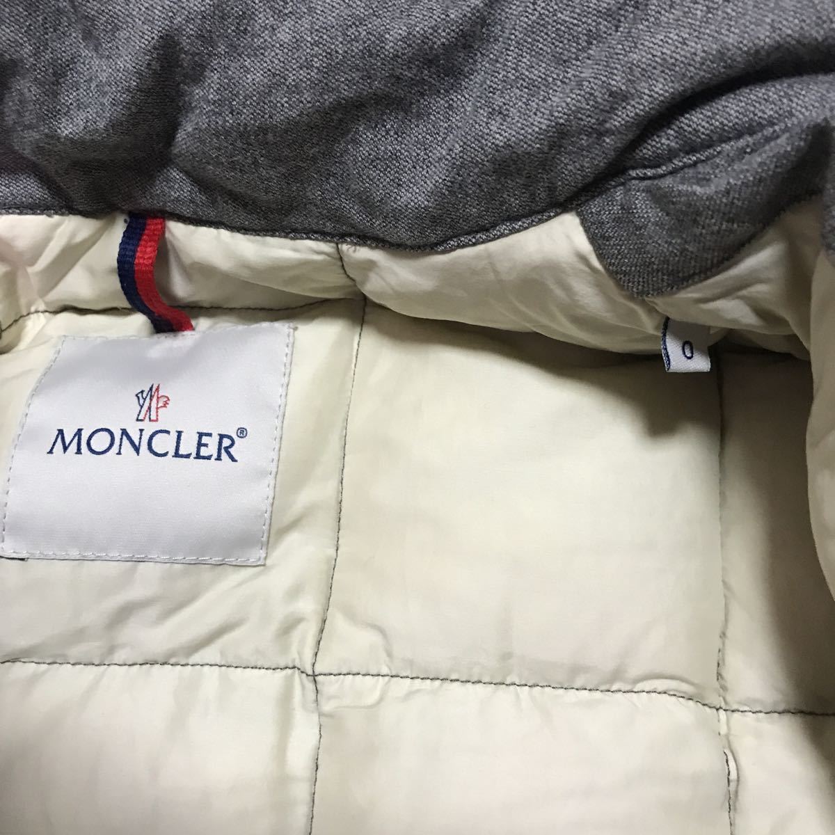 数回着用 モンクレールウールダウンジャケットです。0サイズ、ウール100%、ダウン90、フェザー10%です。実寸は肩幅44、身幅50、着丈62、脇下袖丈47cmです。モンクレールジャパンタグと、三角タグも付いている正規品です。ネットでも見かけないレアモデルです。探していた方、この機会に如何ですか。