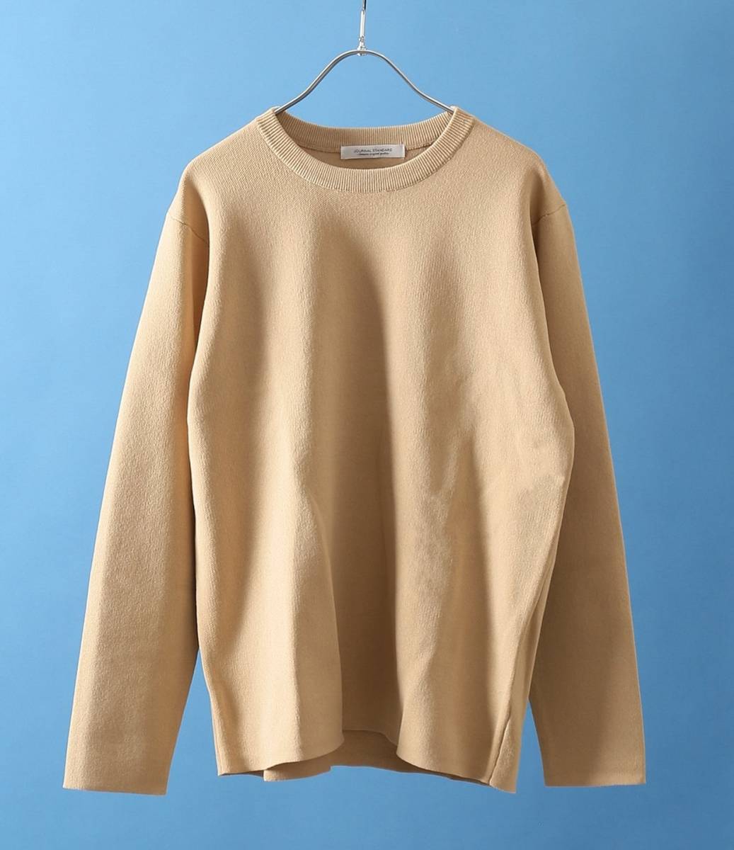 ベーシックなクルーネックのデザインは袖、裾のリブをなくしたストンと落ちるシルエット。