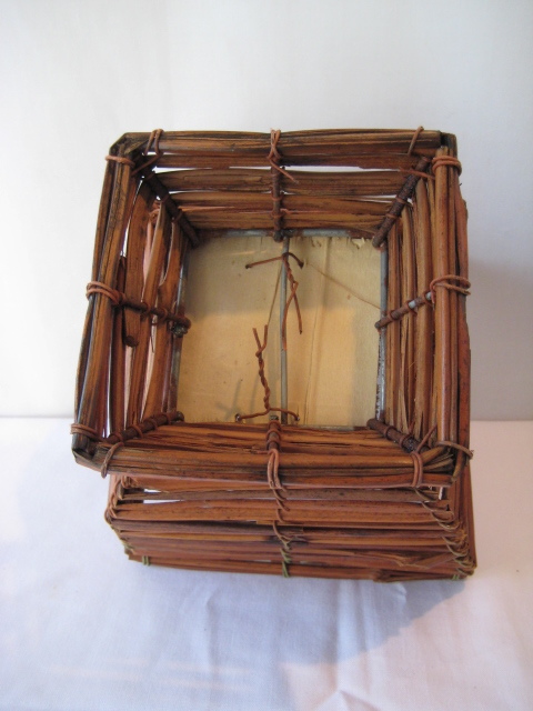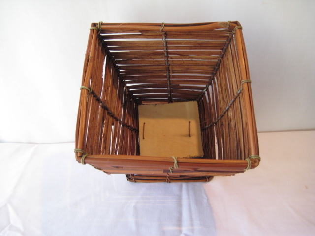 写真1枚目 左側         約  15cm×約 15cm       高さ   約  1 5cm      上から約 11cm底になります。(針金で板を止めています。)