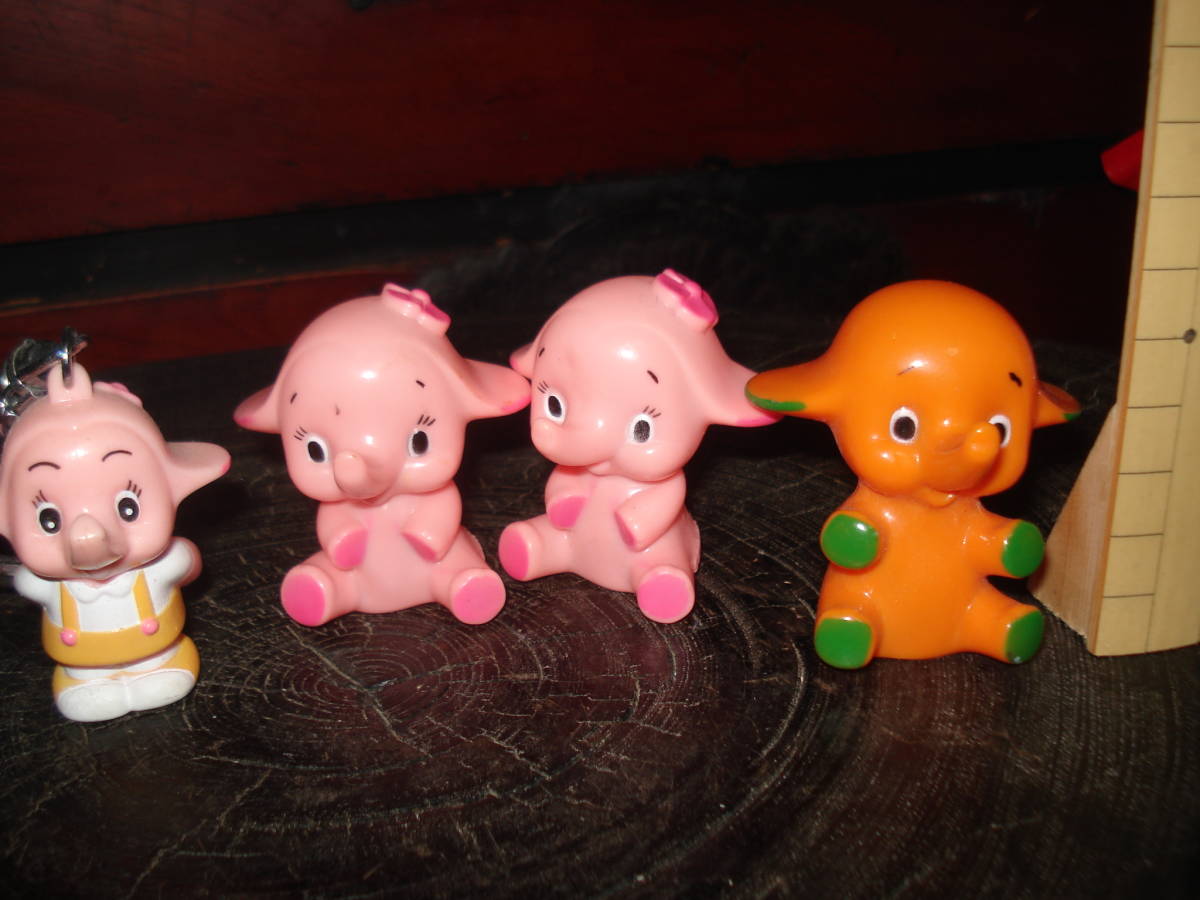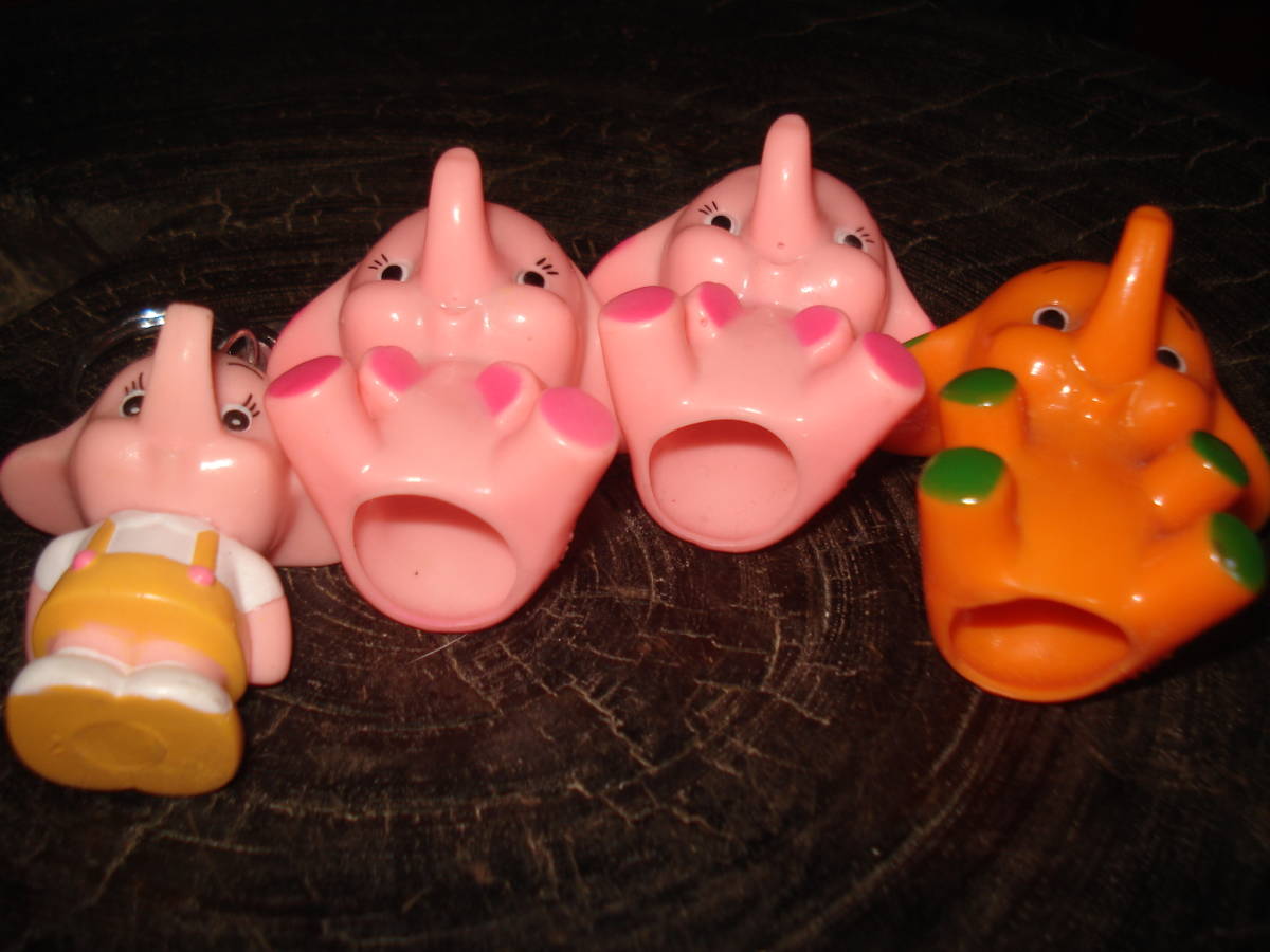 古いものです、黄色スカート、キーホルダー1x指人形3