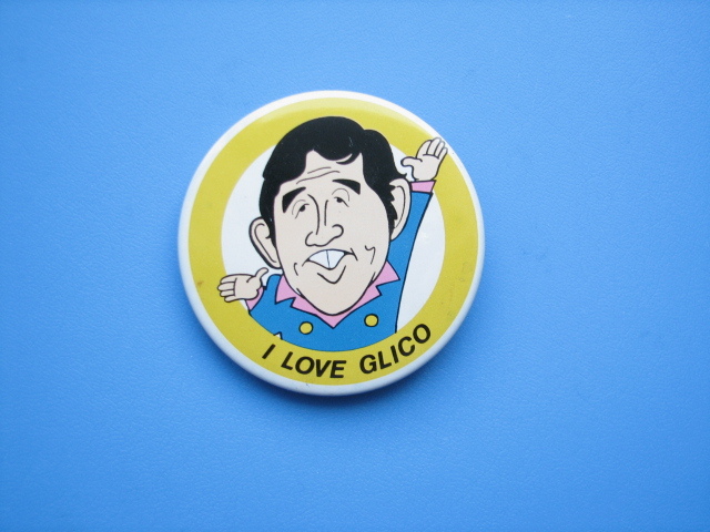 ⭕🌕 👌ばっちり! ◆きんちゃん 萩本欽一絵柄!?◆ 『 I LOVE GLICO 』 缶バツジ ◆「缶バッジのコレクター」◆欽ちゃん◆