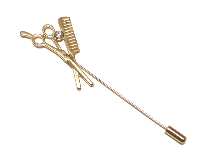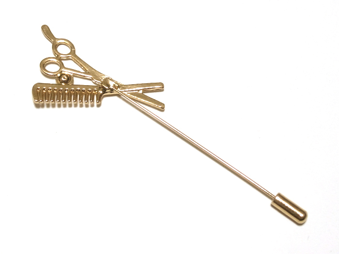 【ラペルピン★スティック】ハサミとコーム★美容師★はさみ★鋏★クシ★くし★櫛★ゴールド/pin-0020