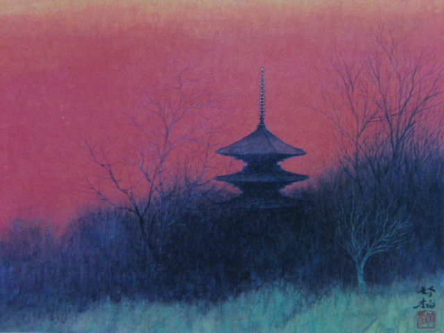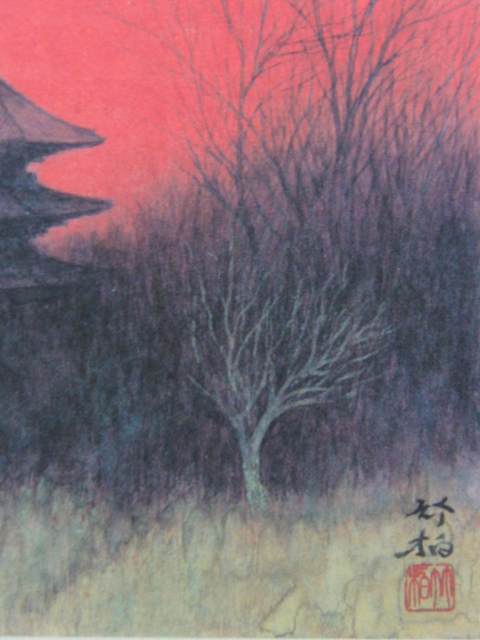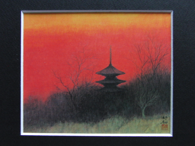 鈴木竹柏、大和夕照、希少な画集より、新品高級額装付、状態良好、送料込み、arte