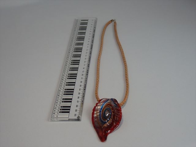 ガラスペンダントトップ素材:ガラス  ガラスペンダントトップサイズ(cm):縦×横×幅:7×4.3×0.2 重さ(g):28.6