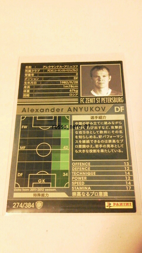 ☆WCCF2011-2012☆11-12☆274☆白☆アレクサンドル・アニュコフ☆FCゼニト・サンクトペテルブルク☆Anyukov☆FC Zenit Sankt Peterburg☆