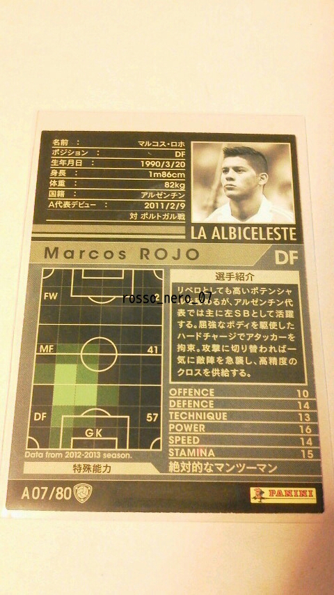 ☆WCCF2012-2013☆12-13Ver.2.0☆A07☆白☆マルコス・ロホ☆アルゼンチン代表☆Marcos Rojo☆La Albicelestes☆