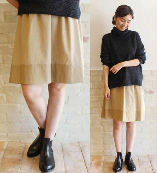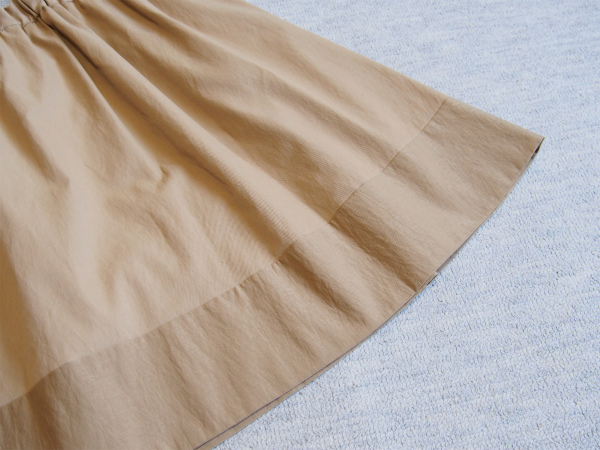 切り替えがアクセントになったギャザースカートです。 ベーシックで合わせやすいシンプルな形で普段使いしやすい一枚です。 ほのかに光沢のある素材なのでカジュアルになりすぎません。