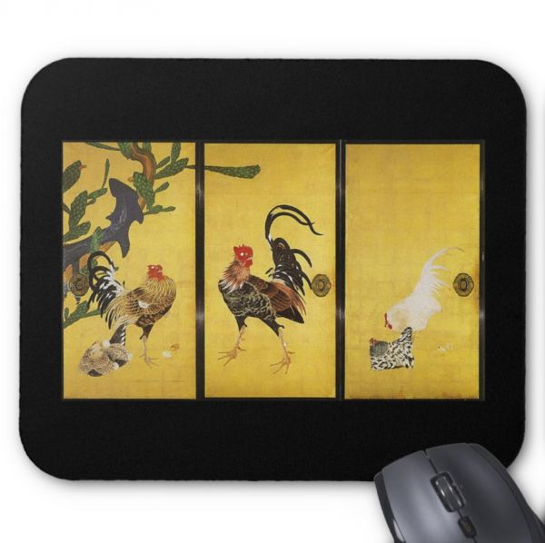江戸時代中期の京にて活躍した絵師、 伊藤若冲 ( 1716~1800年)の『 仙人掌群鶏図 (さぼてんぐんけいず)』の左三面で作った 最高級マウスパッド です。 若冲が大好きな、あなたのために作りました(日本国内の工場で美しく丁寧に焼き付け加工しています)。