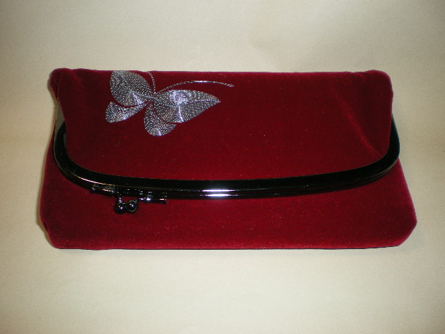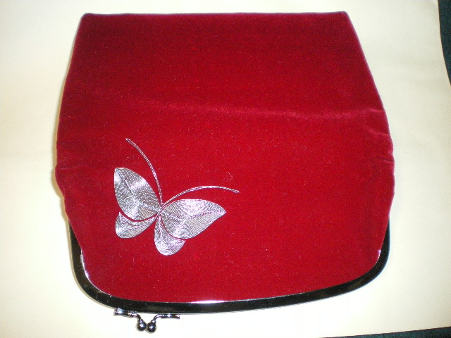 珍品フリマ] 新品同様 がま口形ポーチ 手提げ ハンドバック 蝶の刺繍 50年もの? 元箱付き [送料無料]