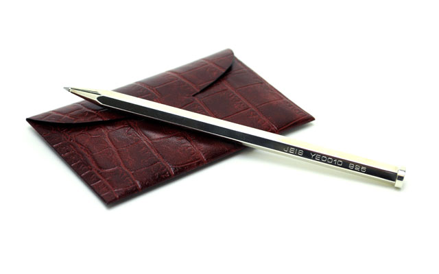 送料無料★ジェイス JEIS 手作り シルバーボールペン 油性インク 革ケース付