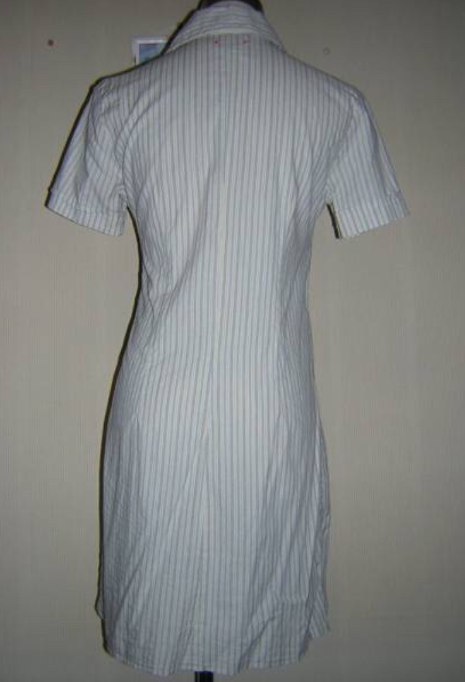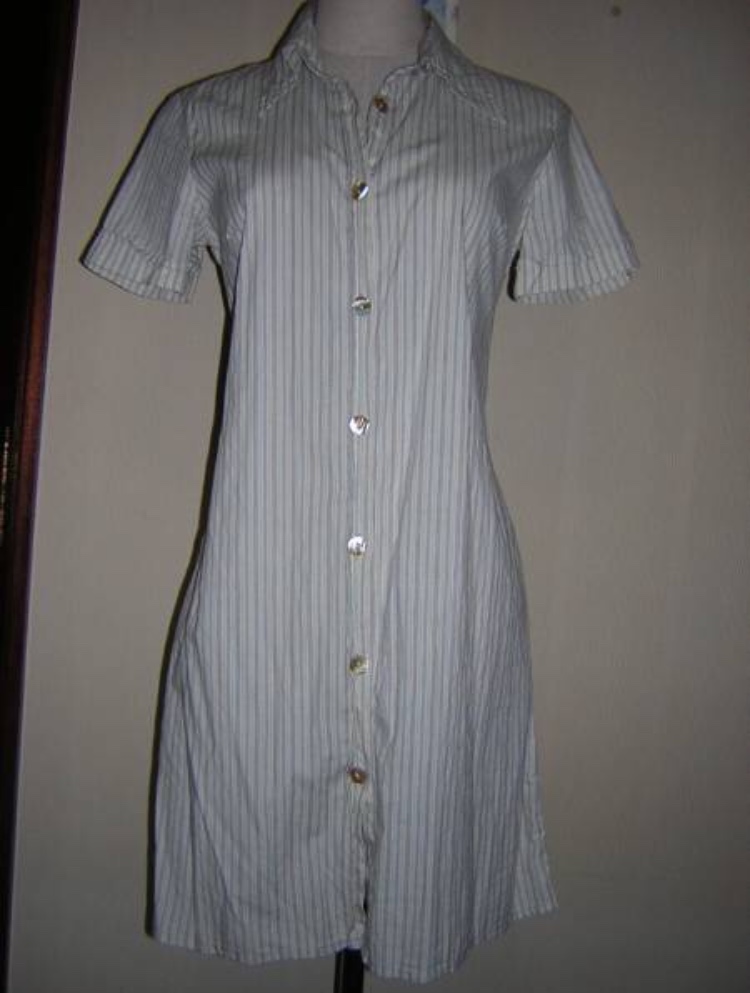 薄手のコットン生地のシンプルなシャツワンピースです。ストールやレギンス、ロールアップしたボーイフレンドデニムによく合います。3,4回程度の着用ですが目立った汚れはありません。貝?ボタンがボコボコしていて凝っています。