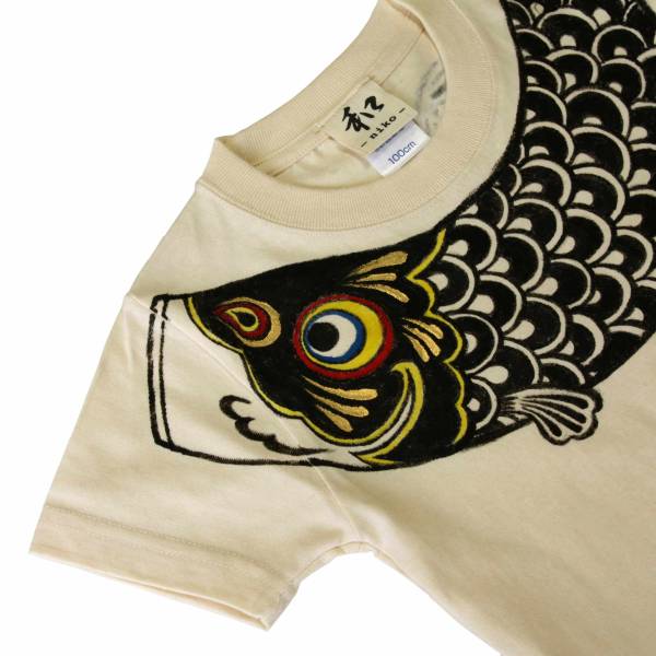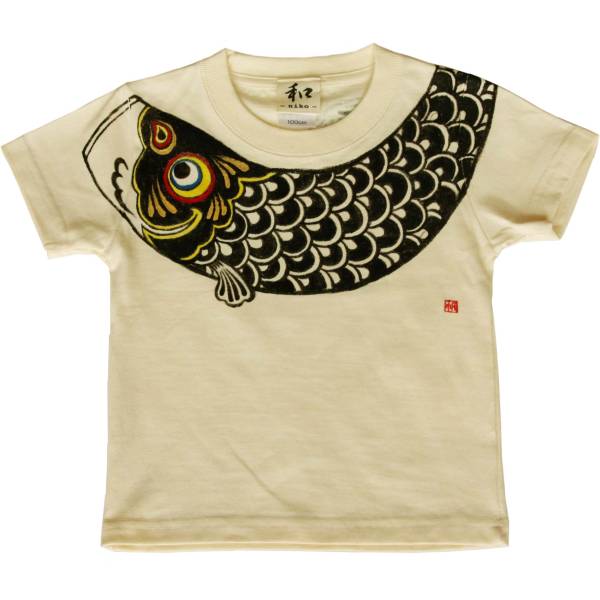 ハンドメイド 手描きTシャツ キッズTシャツ 鯉のぼり柄Tシャツ 手描きで描いた、こいのぼりのTシャツ ナチュラル | |||